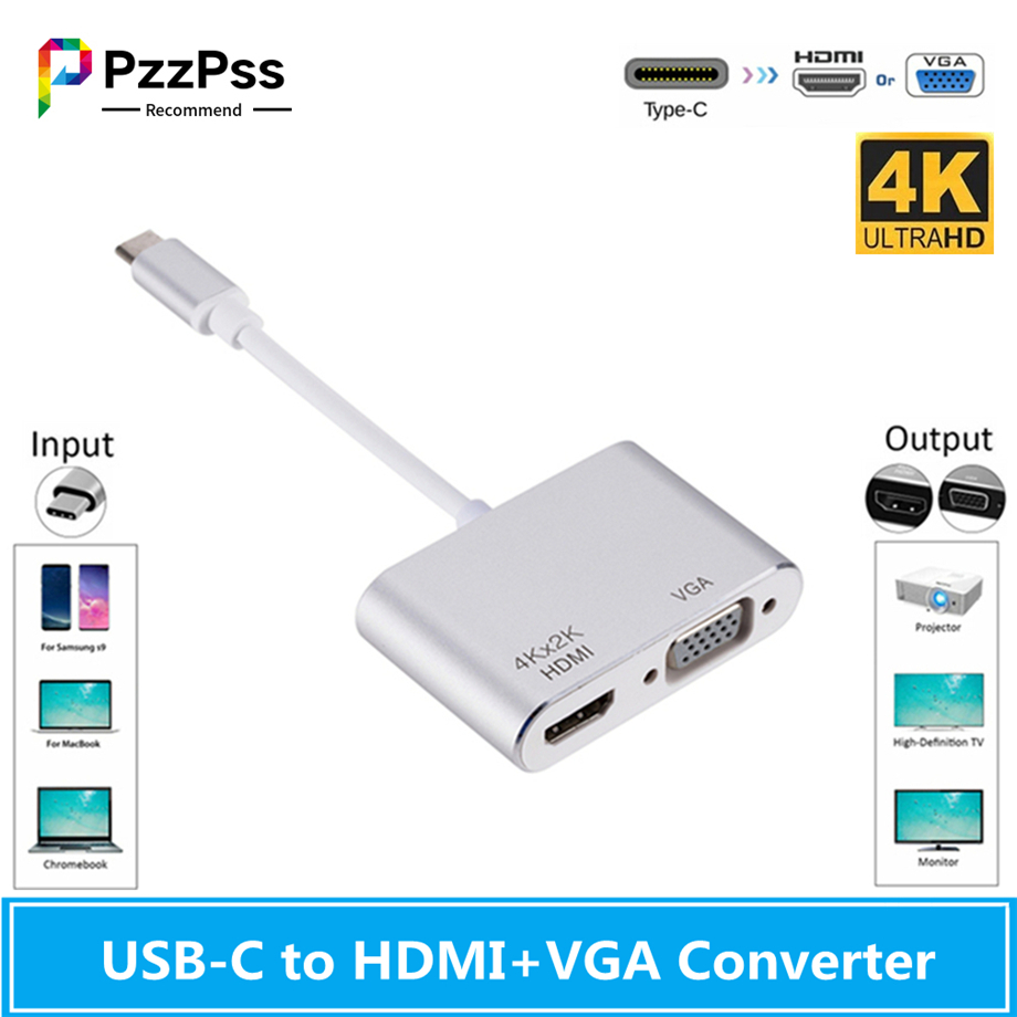 PzzPss USB C кабель USB C к HDMI VGA кабель Тип c к hdmi vga видео адаптер преобразователи Алюминий для нового Macbook Pro мультимедиа