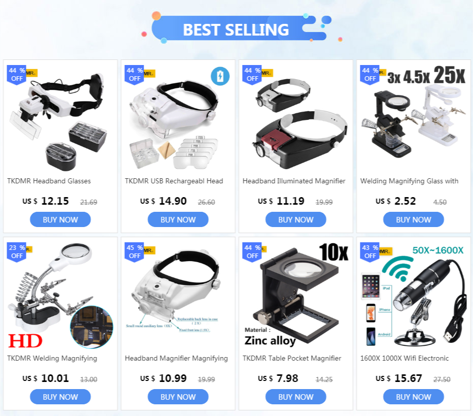 ☛[Множественное регулирование]-две ручки с обеих сторон могут регулировать высоту увеличительного стекла, ручка на задней части может быть отрегулирована, чтобы соответствовать размеру головы. Угол объектива можно отрегулировать или любой объектив, установленный на увеличительном стекле, может быть сложен, особенно маленький круглый объектив (триста шестьдесят ° вращающийся), его можно поворачивать, когда это не нужно.