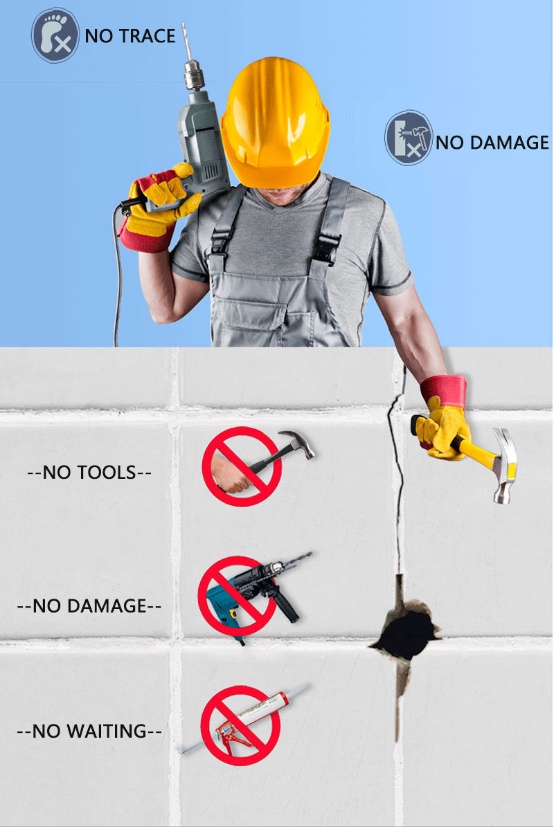 7. Бесплатная Штамповка: инструменты не требуются; Электродрель: без повреждений стены; Без клея: не нужно ждать.