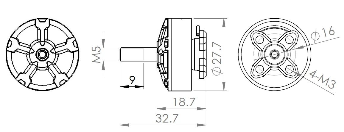 Размеры мотора (Dia.* Len).............................................. Φ27.7 × 18,7 мм