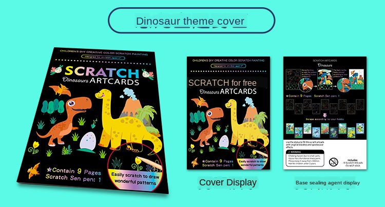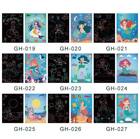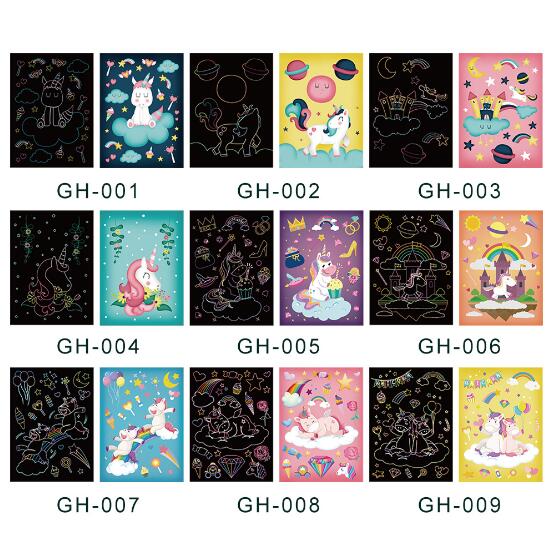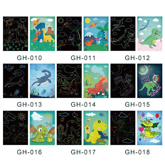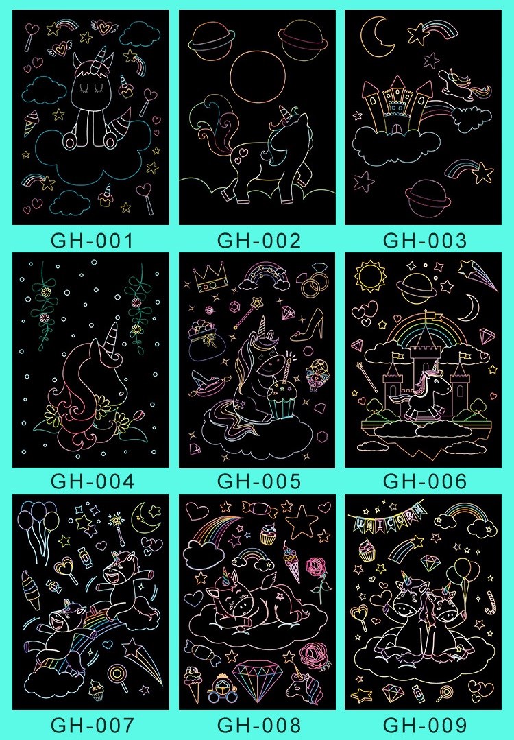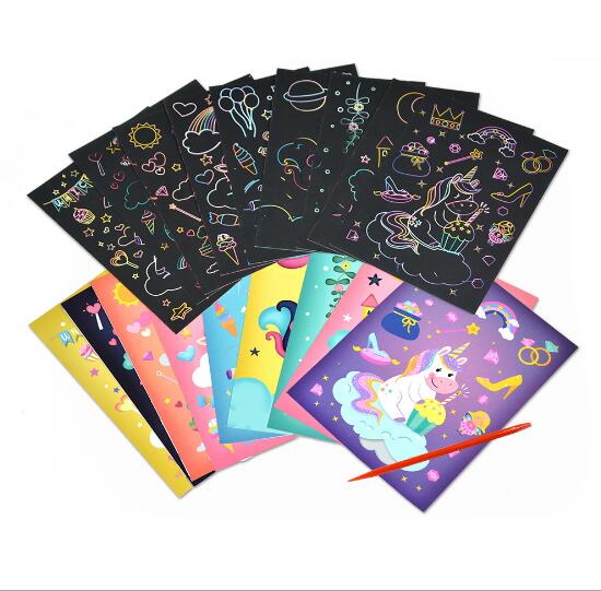 9 шт. бумага для рисования Волшебные радужные цветные царапины художественные карты набор палочек для рисования Мультяшные животные стиль сделай сам игрушки для рисования для детей