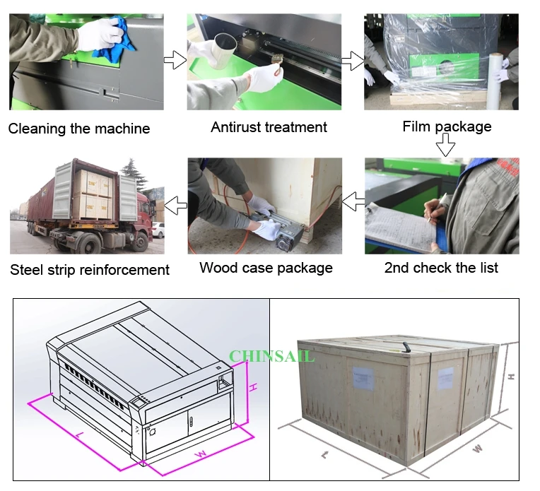 • Все лазерные машины упакованы в стандартную внутреннюю пластиковую пленку и внешний фанерный чехол.