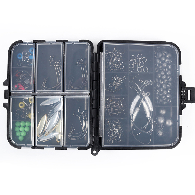 1.Полные аксессуары: Включая почти все необходимые аксессуары для рыбалки. Каждый набор коробок для снастей поставляется с джигами, крючками для рыболовных снастей, весами, лидерами, приманками, Вертлюгами и светящимися бусинами для лески.