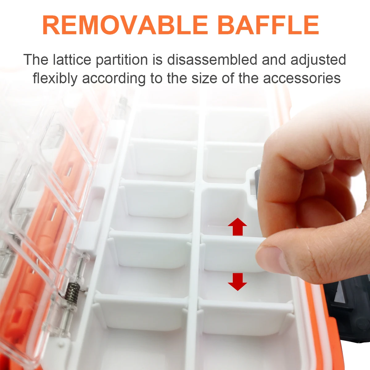 2. Блокировка: высокопрочный замок, антиблокировочный дизайн, более плотно заблокированный, водонепроницаемый и антирассеивающий, чтобы гарантировать, что аксессуары не рассеиваются.