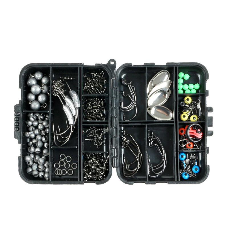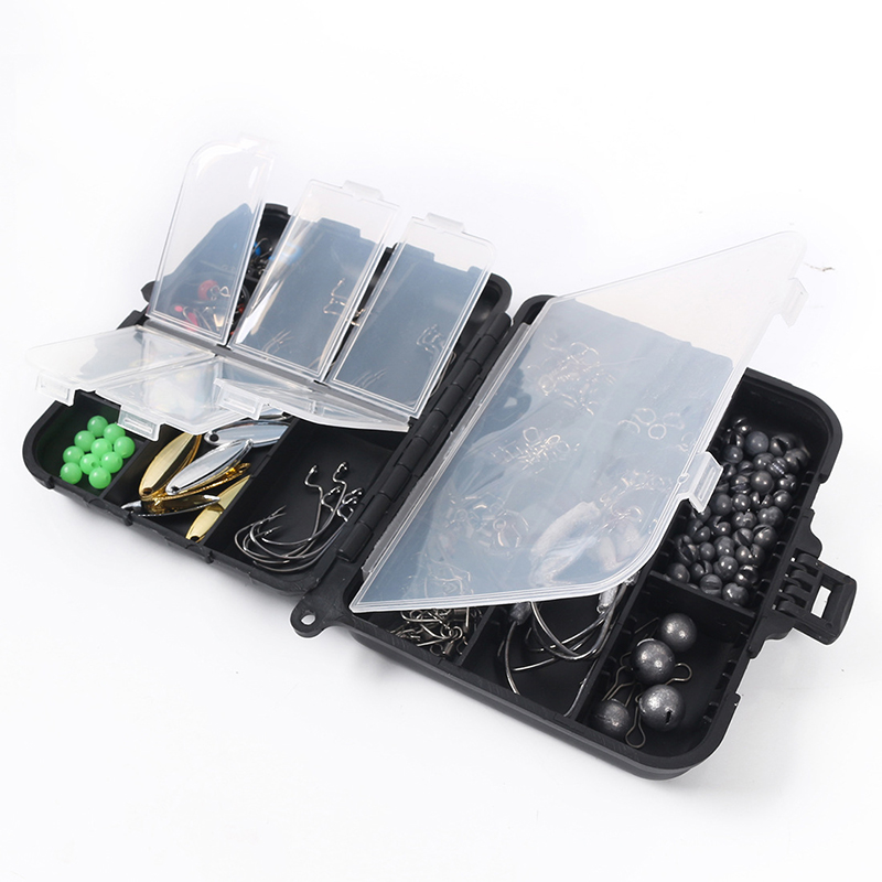 1.Полные аксессуары: Включая почти все необходимые аксессуары для рыбалки. Каждый набор коробок для снастей поставляется с джигами, крючками для рыболовных снастей, весами, лидерами, приманками, Вертлюгами и светящимися бусинами для лески.