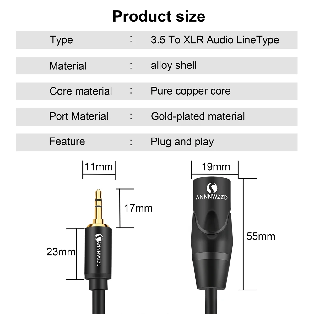 XLR до 3,5 мм кабель соединяет iPhone, iPod, MP3 плеер, планшетный ПК, ноутбук, или диктофон для микшерный пульт или активные колонки; Подключите смартфон с разъемом для наушников, чтобы XLR вход; подключите планшет с помощью приложения-инструмента к микшерной консоли для обеспечения производительности