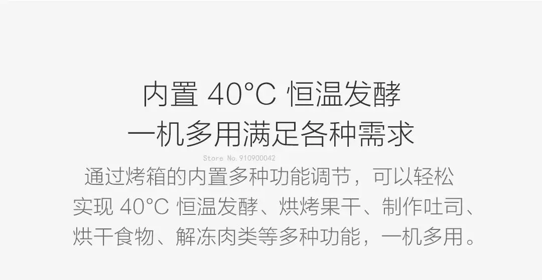 Благодаря встроенной многофункциональной регулировке духовки, легко достичь различных функций, таких как ферментация при постоянной температуре при 40 °C, Выпекание сухофруктов, изготовление тостов, сушка пищи, И размораживание мяса