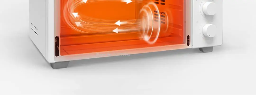 Встроенный вентилятор циркуляции может сделать тепловой поток в корпусе коробки, чтобы обеспечить температурный баланс поля, пища для выпечки быстрая, кожа хрустящая, внутри мягкая и нежная. Избегайте таких проблем, как местное паление и прижимание.