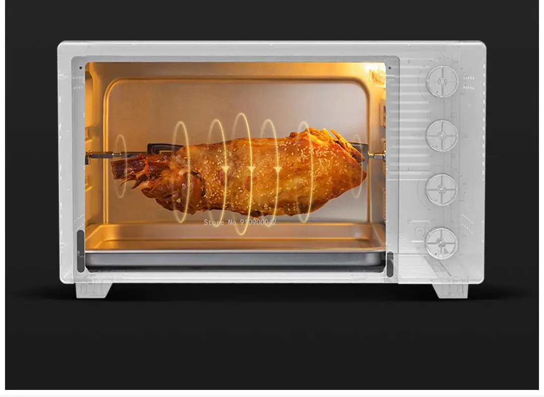 Встроенная вращающаяся на 360 градусов вилка для выпечки может использоваться вместе с функцией циркуляции горячего воздуха. Он может быть жареным n жареной ногой ягненка, целой курицы и другого большого мяса, вращающегося арбека, так что ингредиенты более равномерно нагреваются, Хрустящие снаружи и сочные внутри.
