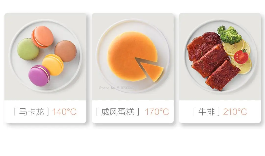 [Макарон] 140 °C [ураганный торт] 170 °C [стейк] 210 °C