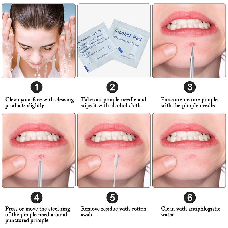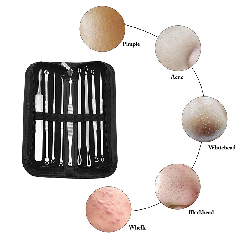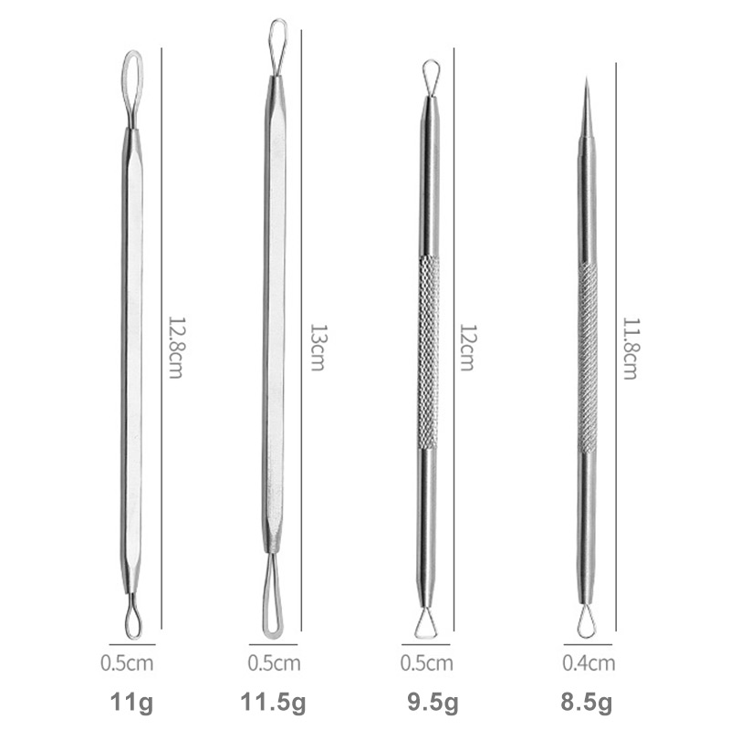 3. Многоцелевое использование: этот набор устройств для удаления черных точек содержит различные инструменты для извлечения, а их Размеры и форма цепи также отличаются. С помощью этих практичных косметических инструментов вы можете легко удалить акне, акне и различные пятна.