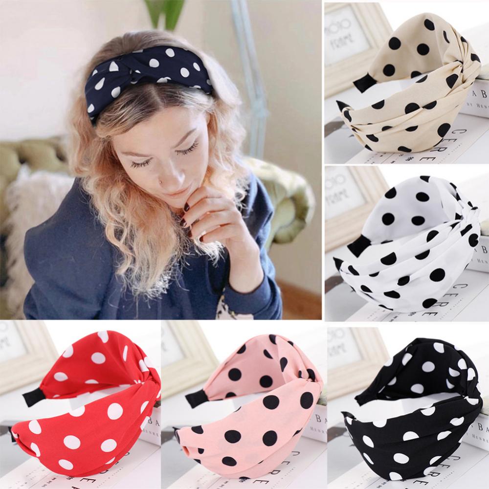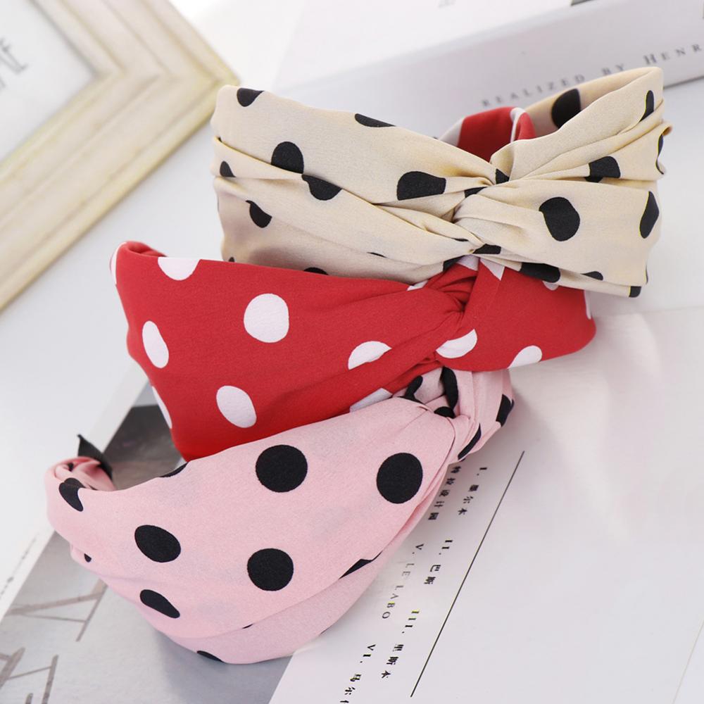 Модный обруч для волос в горошек с узлом, Женский обруч для волос с широким ободком, головной убор
