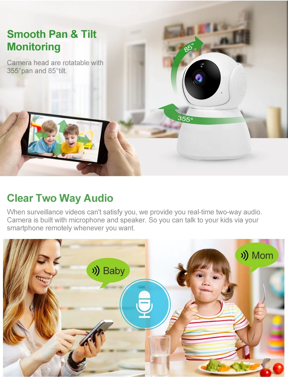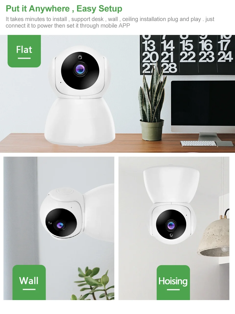 1. Потрясающая беспроводная Wifi камера Full HD 1080P IP; Быстрая настройка Wifi через смартфон с помощью приложения для смартфона.