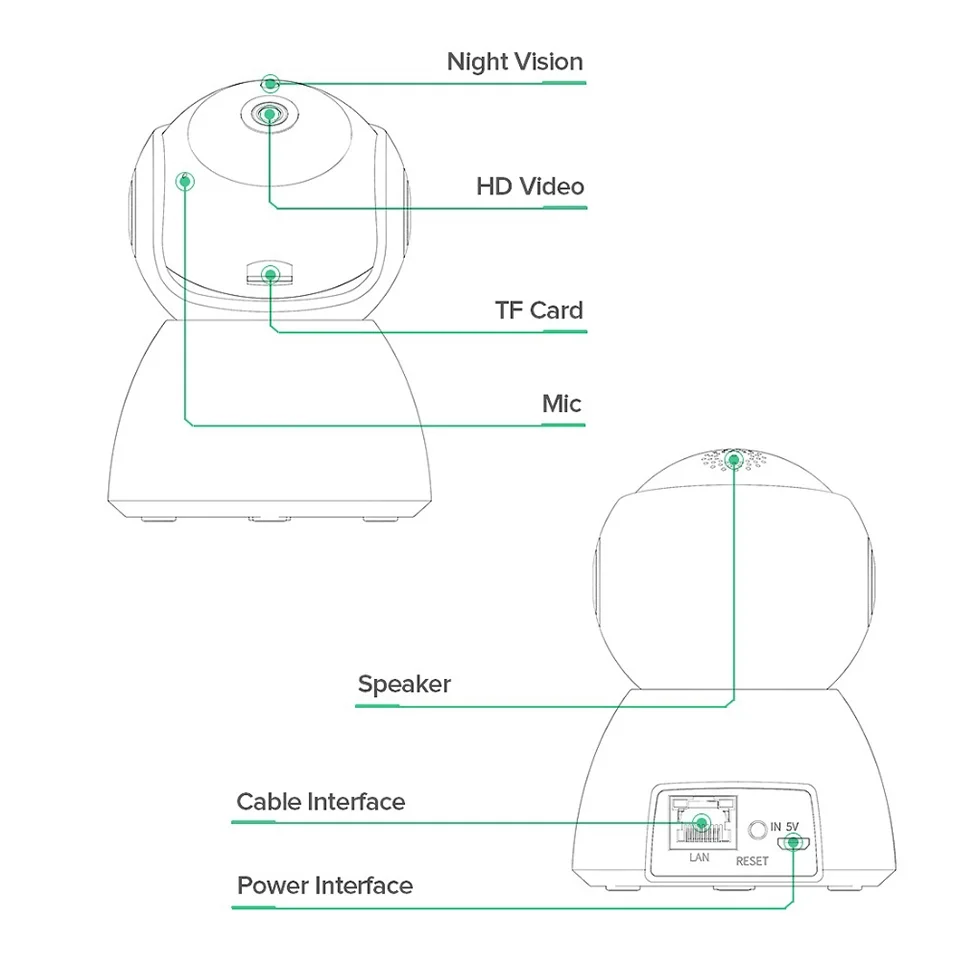 8. Точка доступа: встроенный WIFI, телефон может подключаться к точке доступа камеры в пределах 10 м.