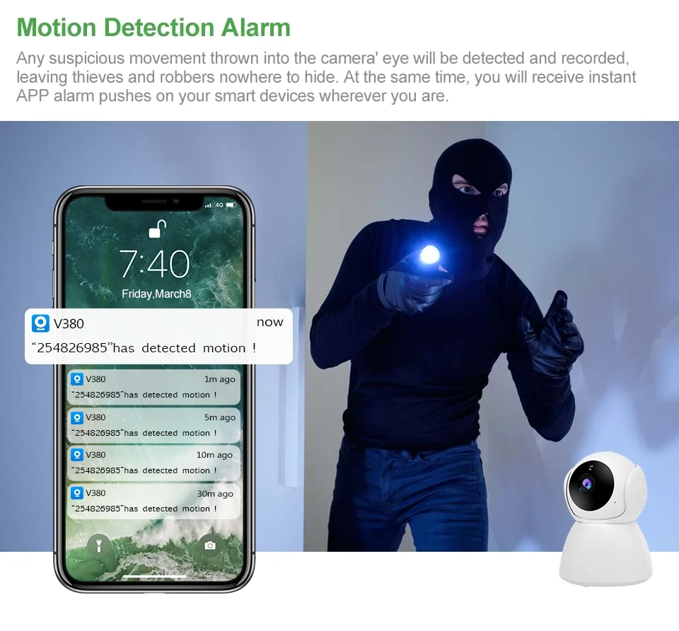 3. Встроенный IR-Cut и светодиодный свет для ночного видения до 10 м, стоя смотреть ваш дом.