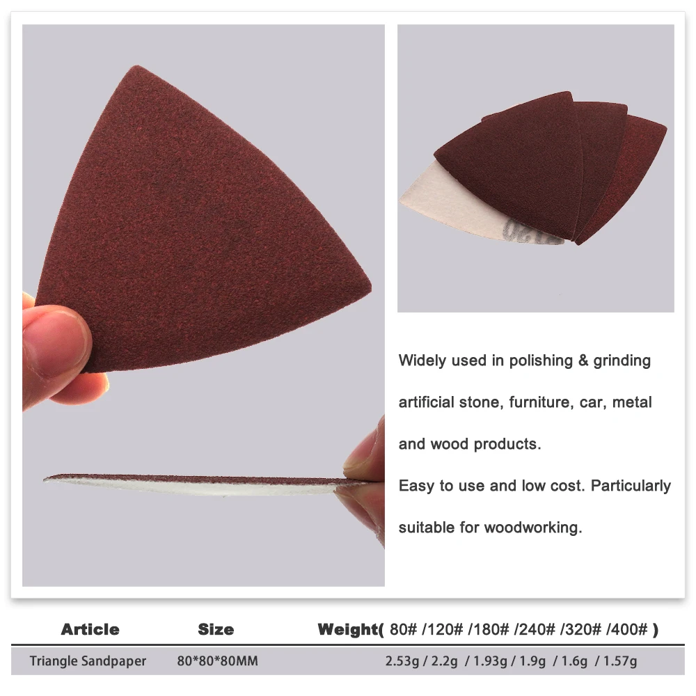 [Wide Application]: The oscillating multitool sandpaper with triangle sanding pad is perfect for wood polish, meeting the need in multipurpose sanding on hardwoods such as oak and yellow pine, or building boards like plywood.
