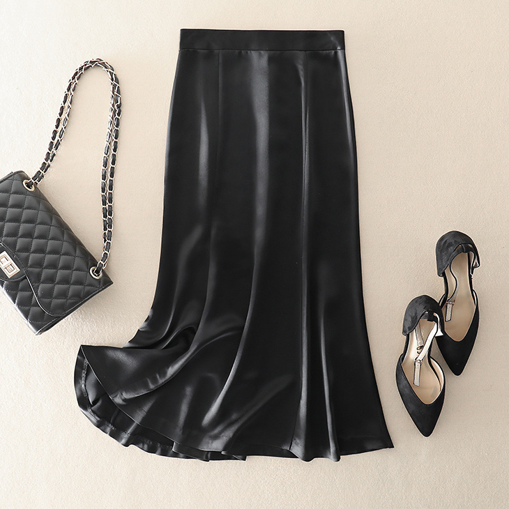 2021 новая летняя женская миди Офисная Женская юбка с высокой талией Черного и зеленого цвета элегантная облегающая атласная трапециевидная юбка Jupe Femme Y360