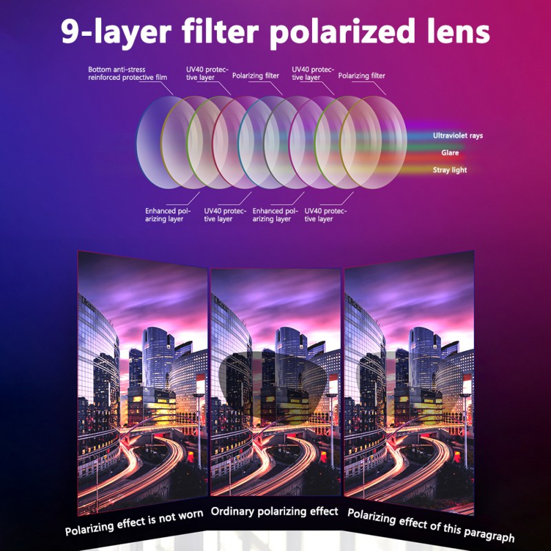 1. Элегантный внешний вид в сочетании с уникальным дизайном является первым выбором для водителей и любителей спорта. В оправе очков используется материал ABS, который можно регулировать при температуре 270 градусов, обладает сильной прочностью, не легко ломается и удобен в носке. Идеальное сочетание науки и практичности делает вас более привлекательными;