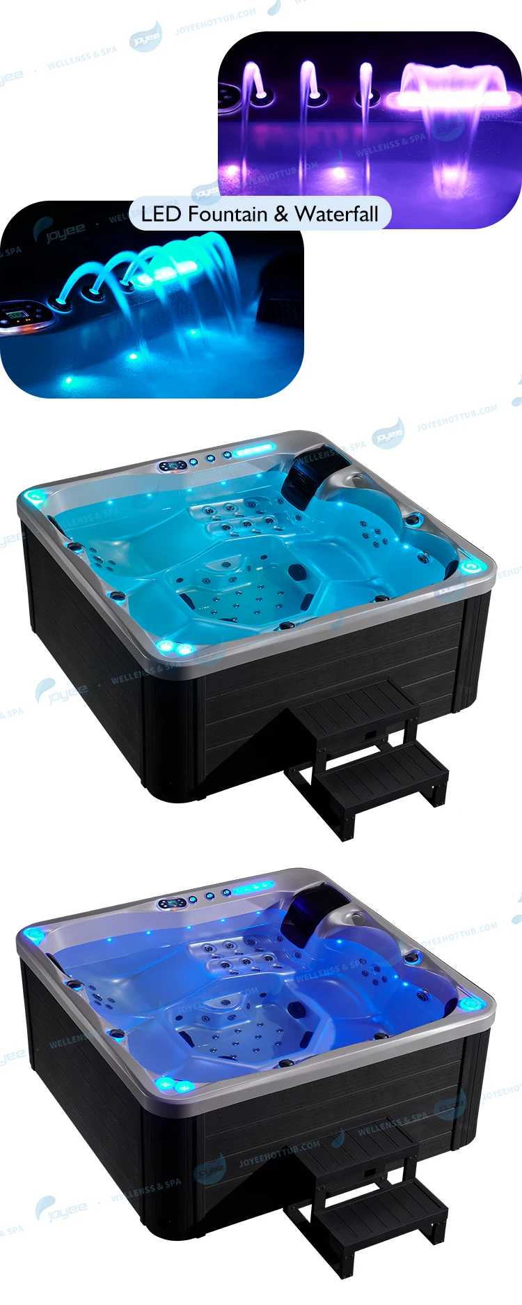 Наша спа-Ванна изготовлена из чистого акрила Aristech США, система управления Бальбоа, такая Высококачественная импортная конфигурация, и рамка из нержавеющей стали 304 для поддержки ванны сильно, А также выберите «LX» насос с сертификатом CE, UL и SAA.