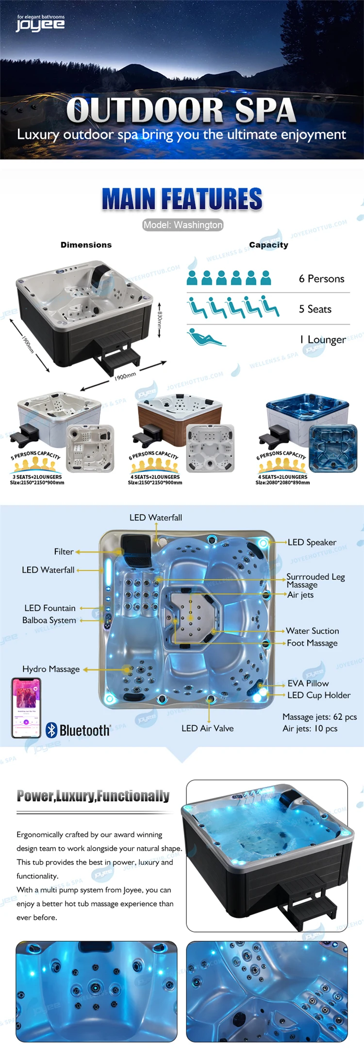 JOYEE Заводская оптовая цена 6 человек джакузи массаж большая ванна Роскошная гидромассажная Ванна в европейском стиле открытый спа с воздушным пузырьком струей
