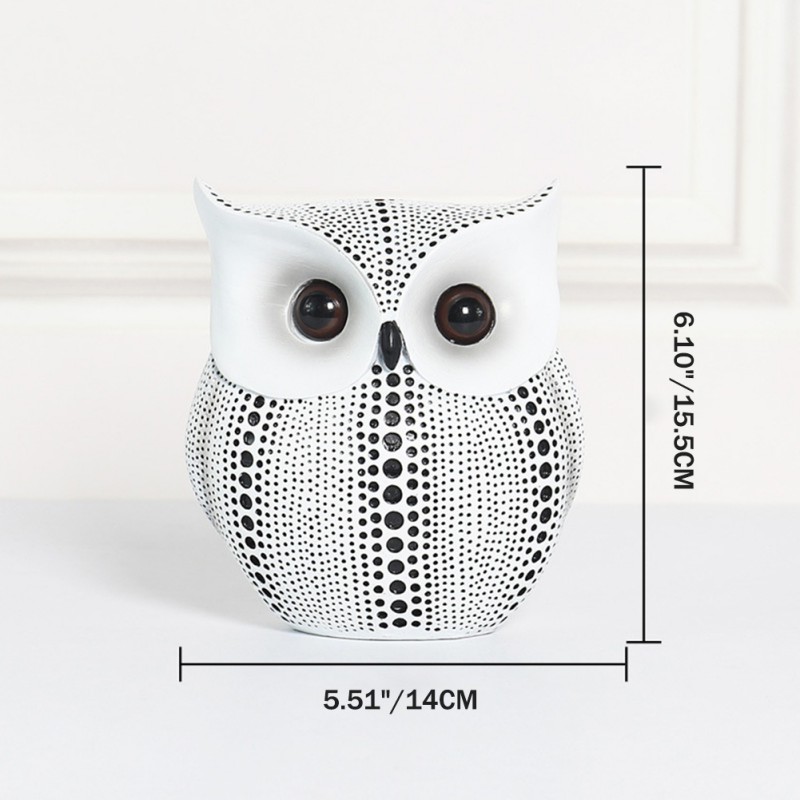 1. Красивая и Утонченная статуя совы, с узором в горошек, может быть идеально интегрирована с большинством домашних украшений и праздничных украшений. Просто поместите его там, где вам нравится, таких как книжные полки, каминные мантелы, ТВ-шкафы, подоконники, прикроватные столы, журнальные Угловые барные столы, развлекательные центры и т. д.
