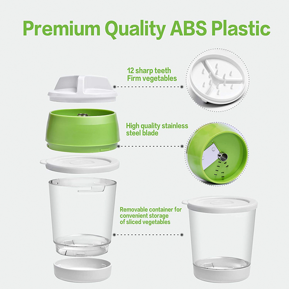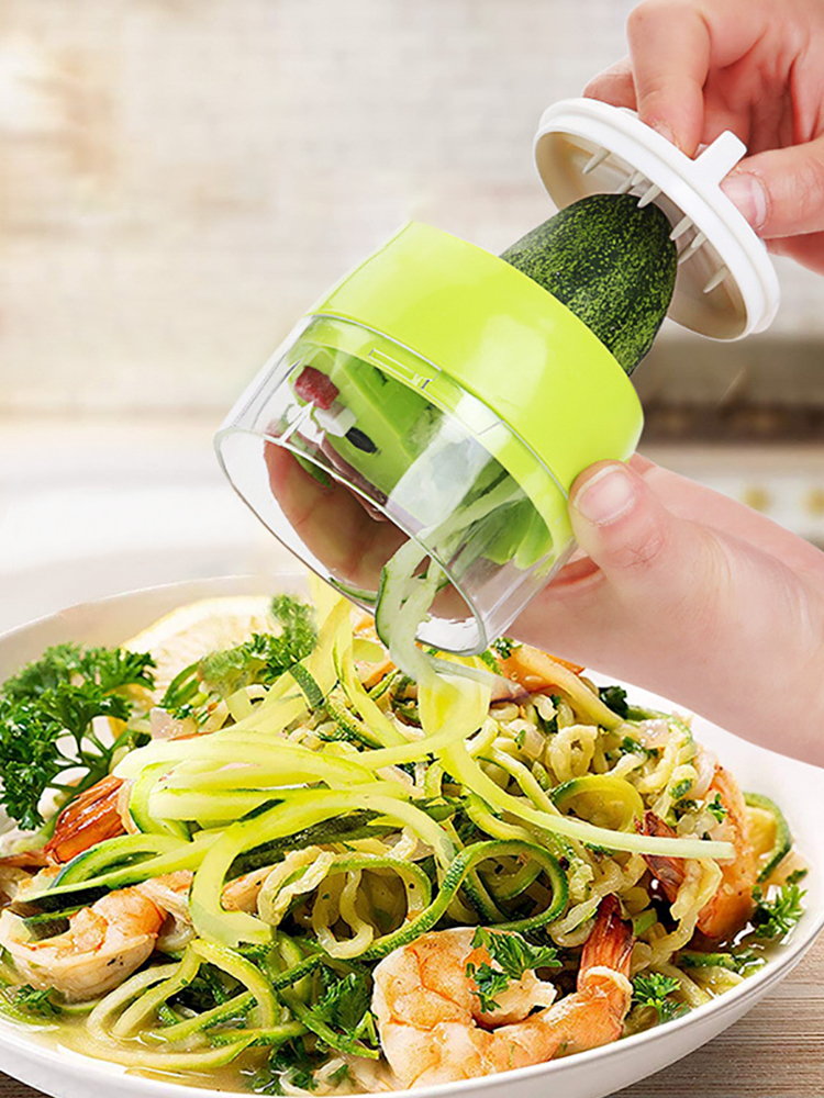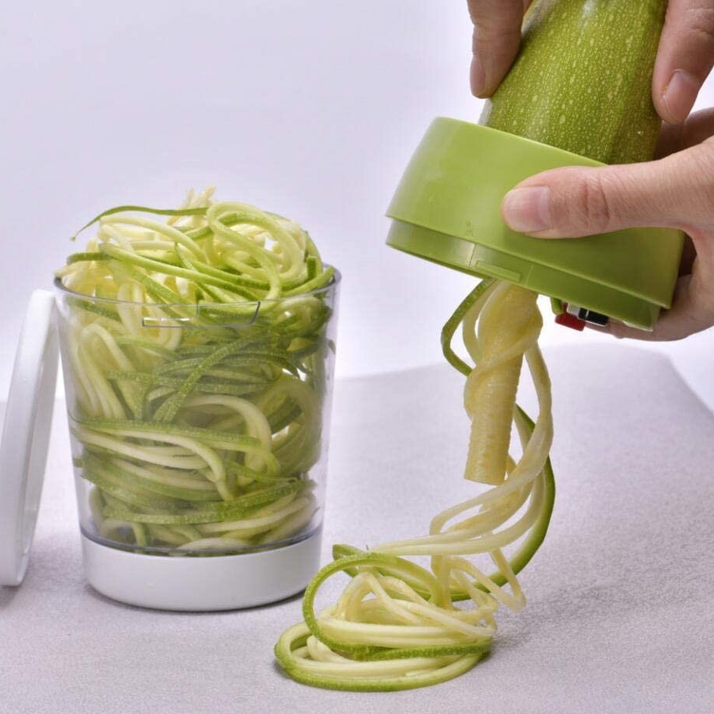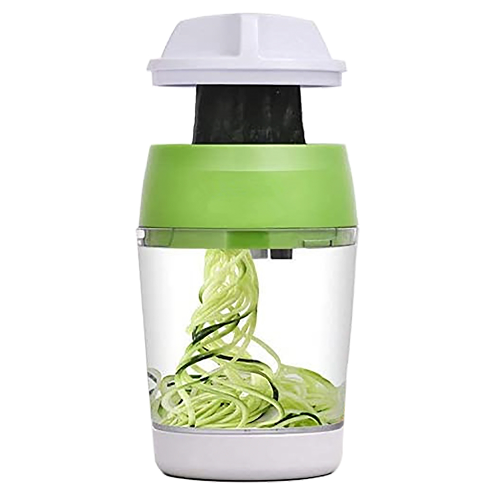 4. 5 в 1, имеет 3 кнопки, 3 лезвия, 4 узора, 1 контейнер, создает овощи в четырех различных размерах с ручным спиральным резаком с 3 лезвиями. Нажмите кнопку 1: julienne cut; Нажмите кнопку 2: узкая спиральная форма; Нажмите кнопку 1 2: спагетти; Нажмите кнопку Reset: ширина спиральной формы. Вы можете переключать режимы с помощью кнопки, чтобы выбрать ваши любимые формы.