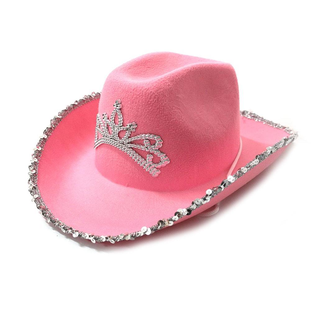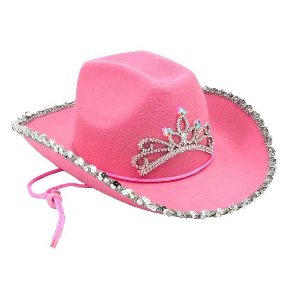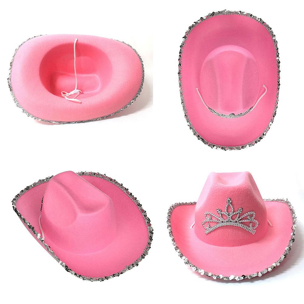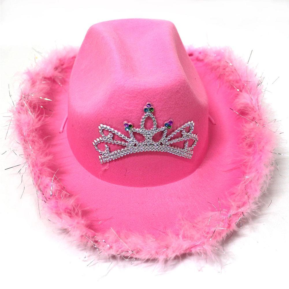 Розовые стразы Корона блестки/перо широкими полями Cowgirl фестиваль шляпа с цветсветильник кой