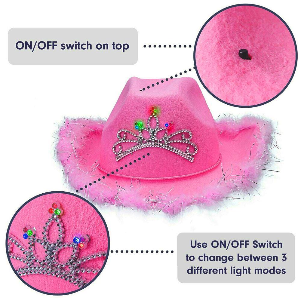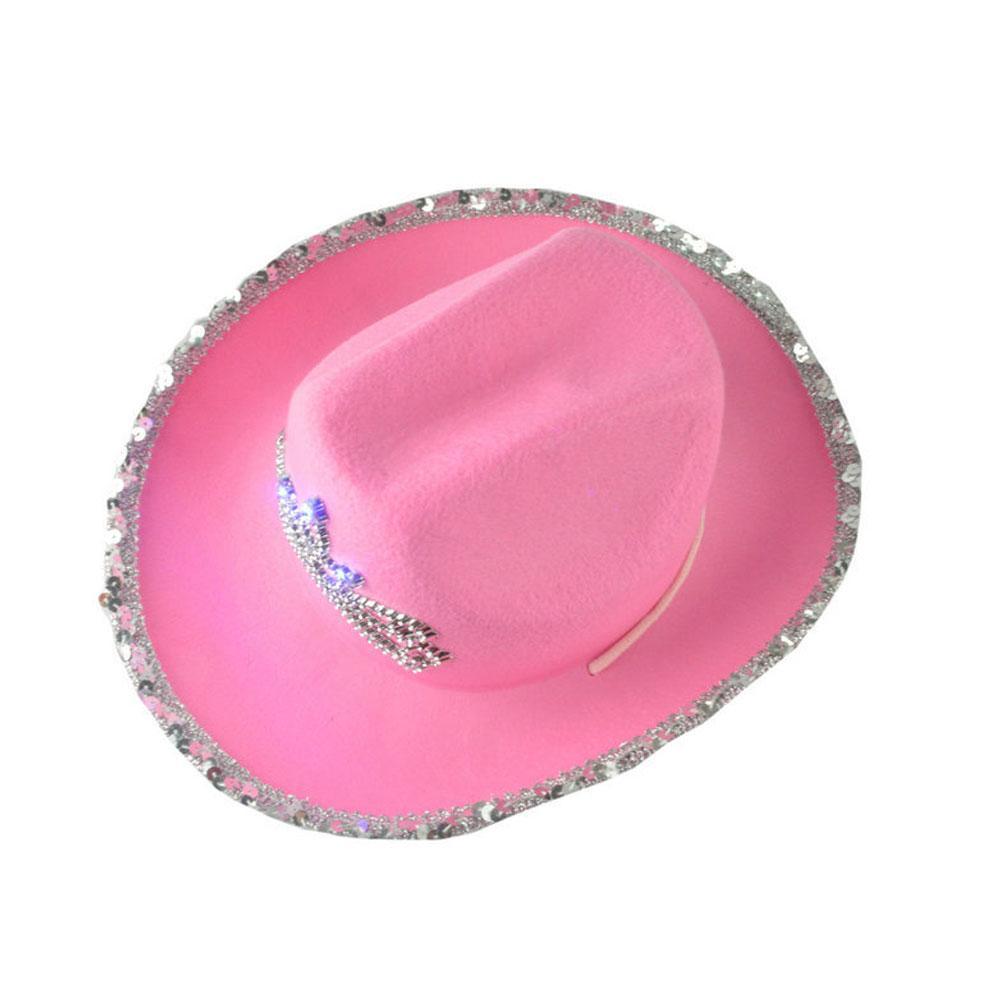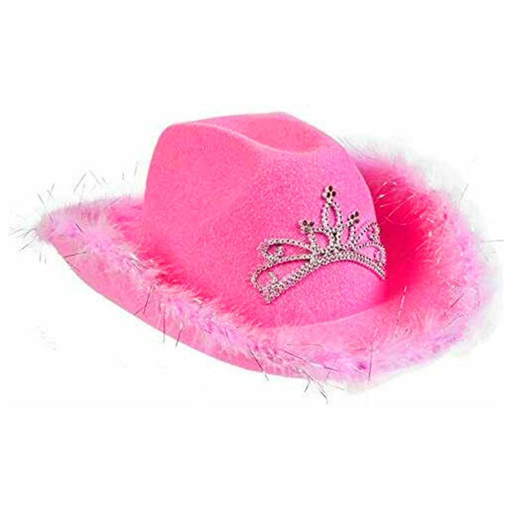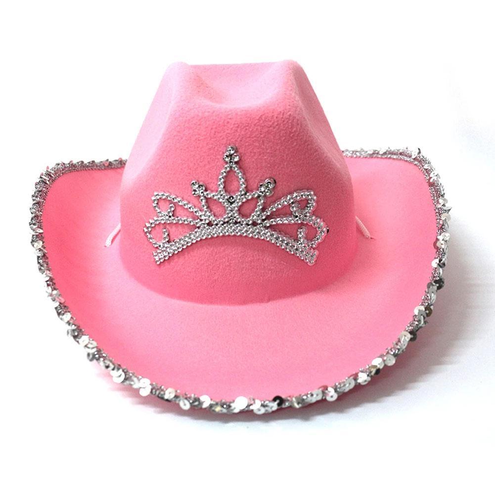 Розовые стразы Корона блестки/перо широкими полями Cowgirl фестиваль шляпа с цветсветильник кой