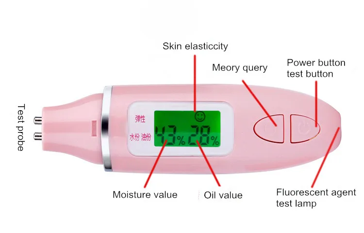 Проверяйте содержание влаги в коже, содержание масла и гибкость, а также может использоваться для обнаружения флуоресцентной кислоты.