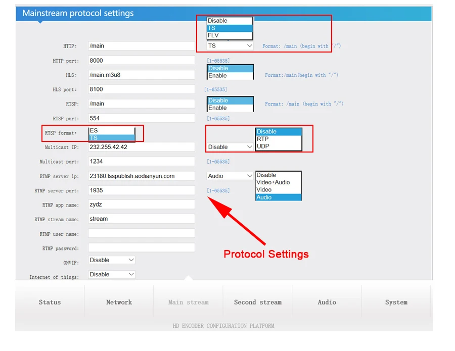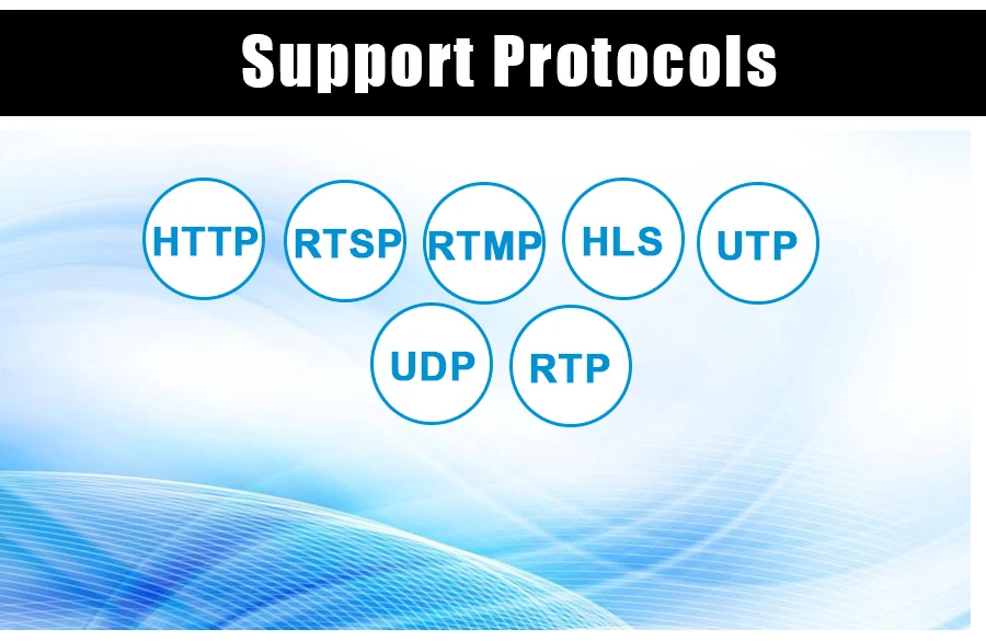 Поддержка протокола HTTP, RTSP, RTMP, RTMPS,UTP, UDP/RTP