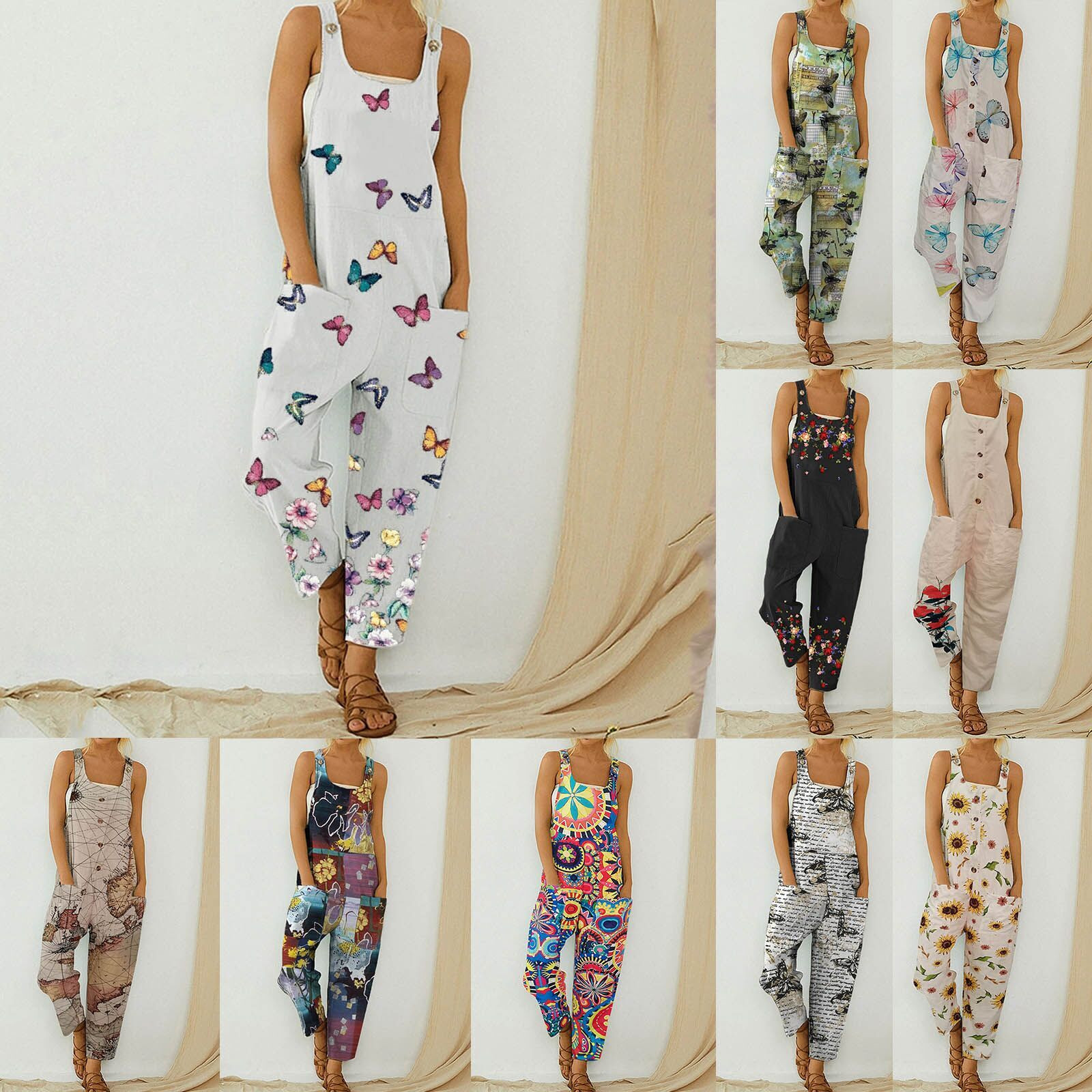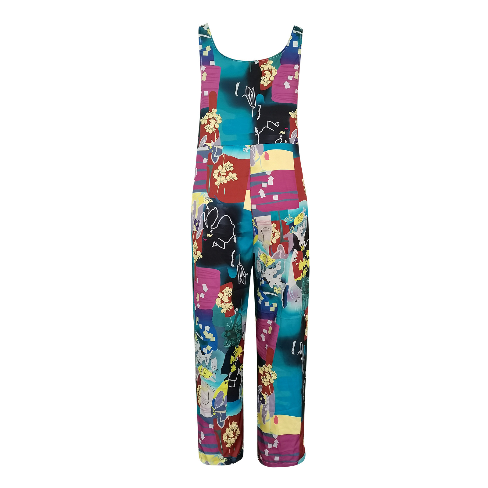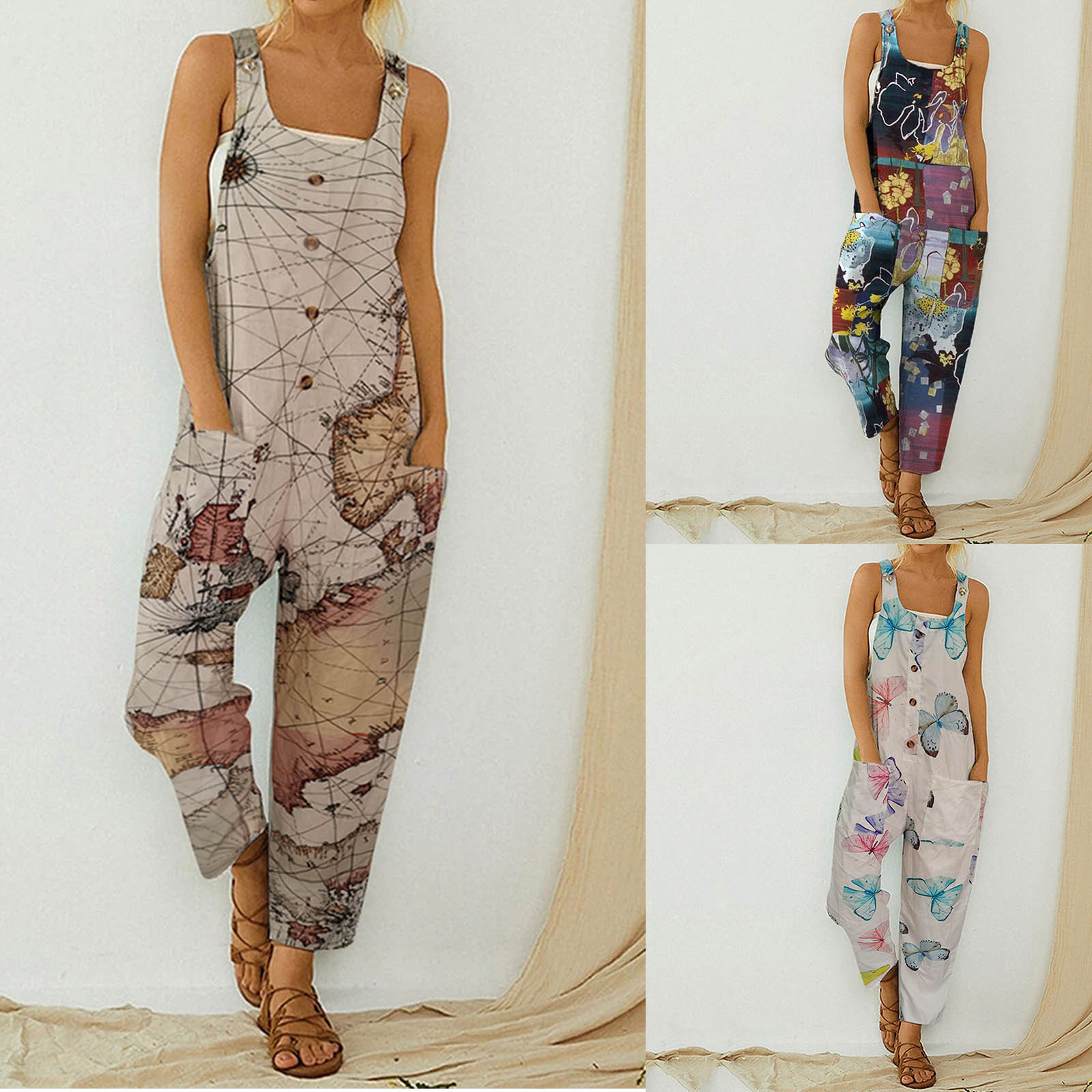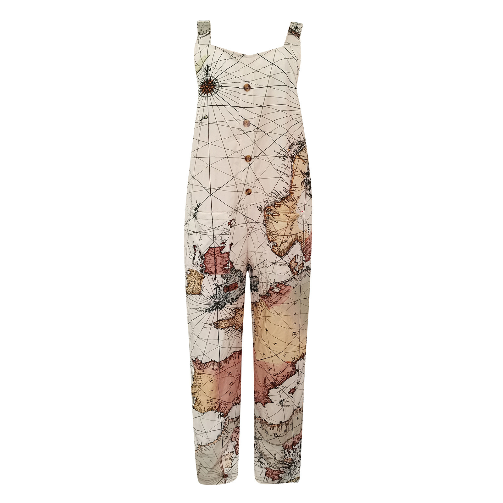 Женский модный комбинезон с карманами, Длинный летний комбинезон с принтом в стиле ретро, Свободный комбинезон на бретелях без рукавов, 2021