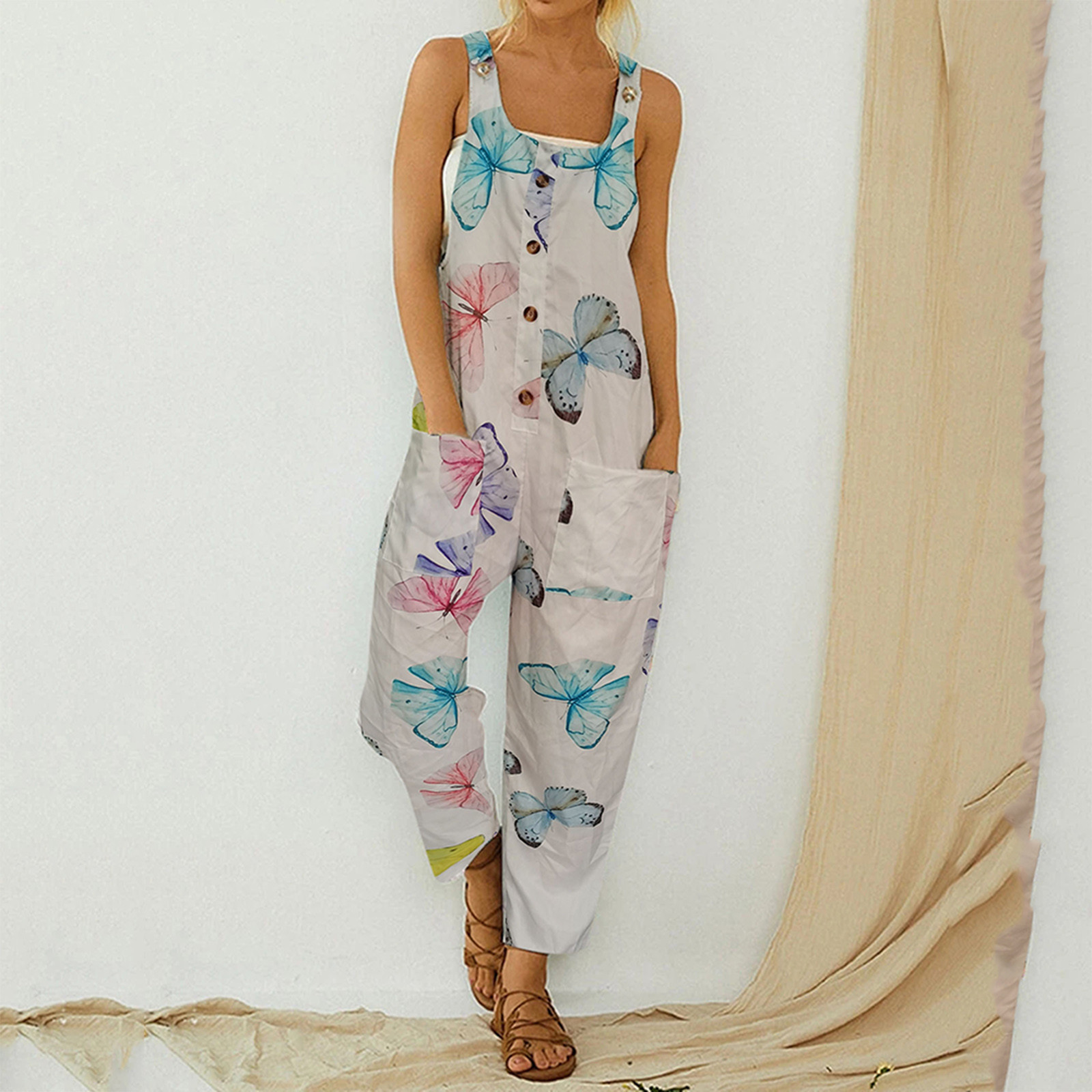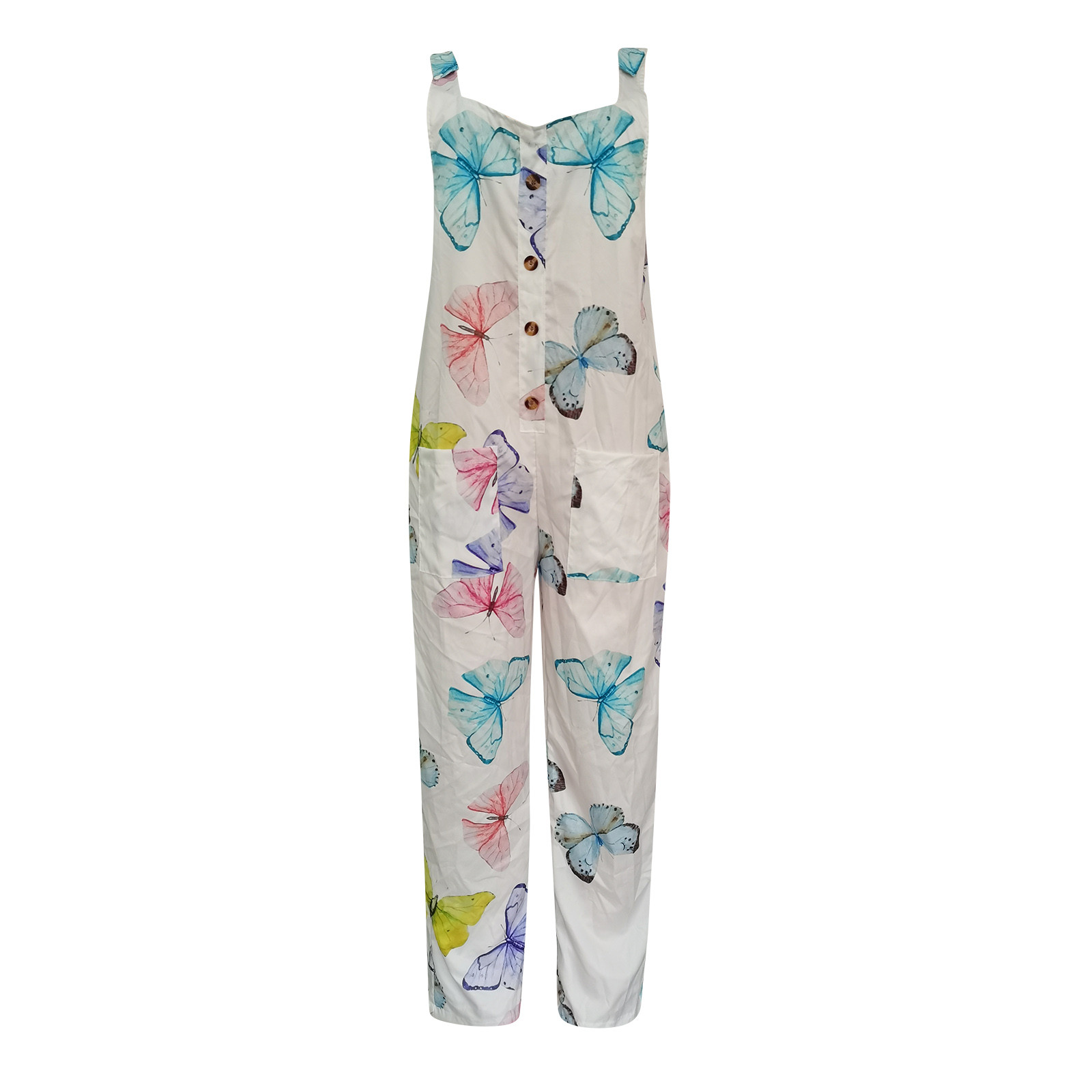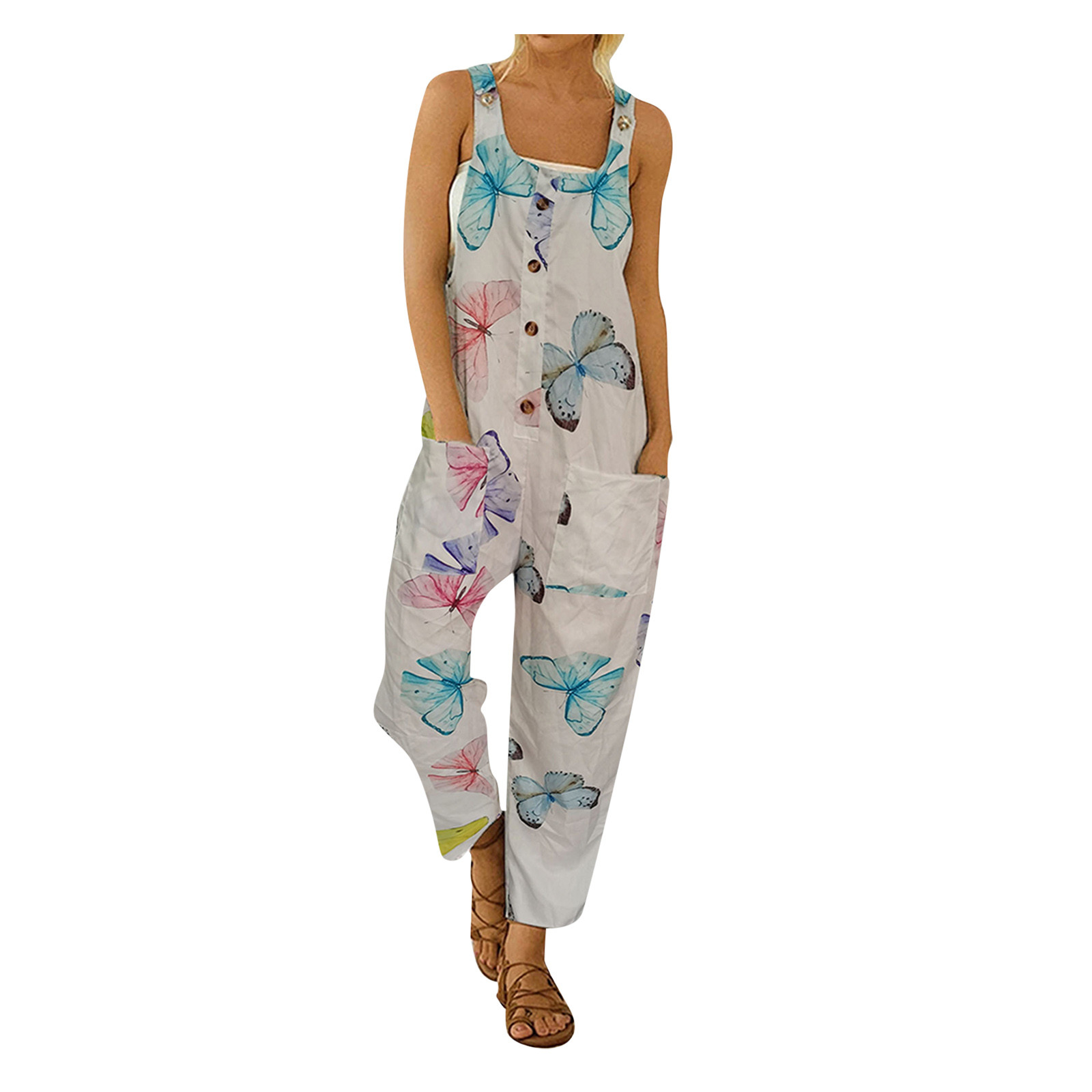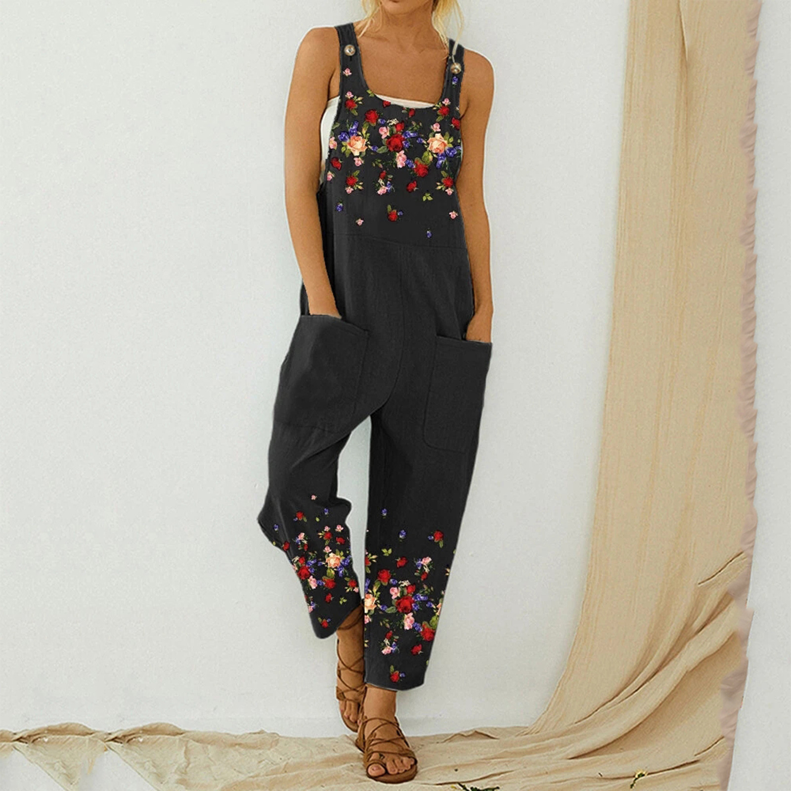 Женский модный комбинезон с карманами, Длинный летний комбинезон с принтом в стиле ретро, Свободный комбинезон на бретелях без рукавов, 2021