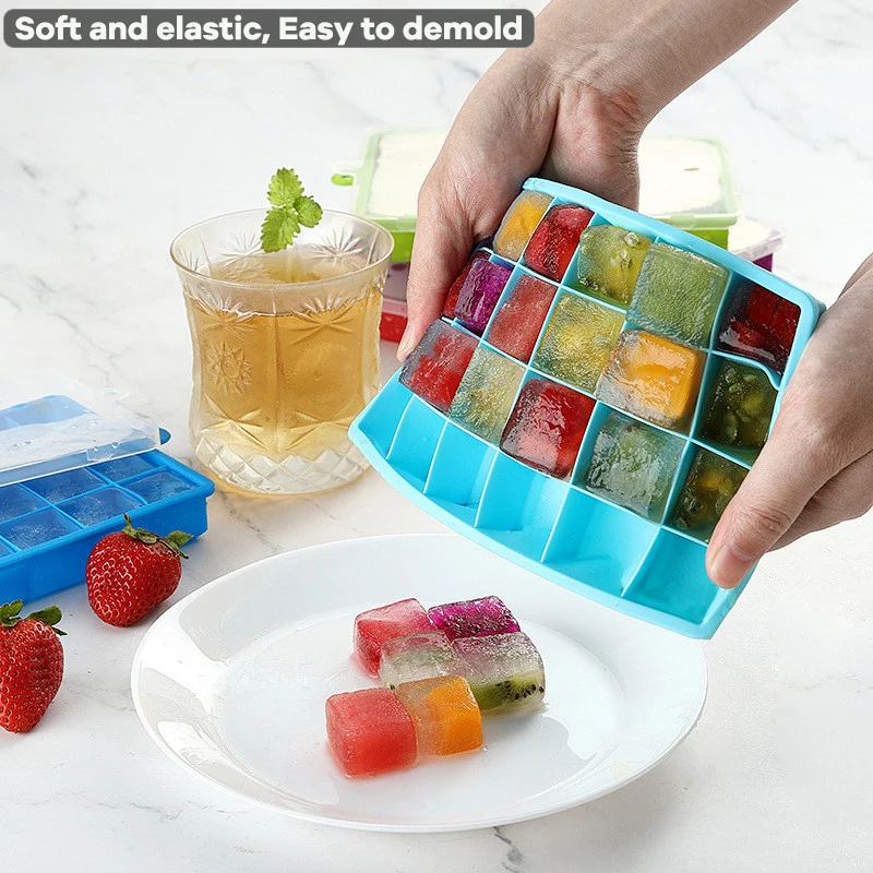Описание:24 Сетки силиконовый кубик льда с крышкой/15 сеток силиконовый кубик льда с крышкойХарактеристики:Материал: безопасный силикон для пищевых продуктов и не содержит бисфенолаЦвет: красный/зеленый/фиолетовый/синий/небесно-голубойТемпература: от-40F до + 446F (от-40 ℃ до + 230 ℃)Размер: как показано на картинке