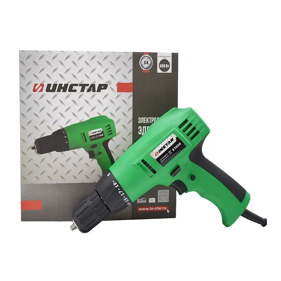 Быстрозажимной патрон, диаметром 10мм, облегчает процесс замены оснастки. Небольшой вес и габариты способствуют комфортной работе оператора. Функция реверса предназначена для заворачивания и выворачивания саморезов, шурупов. Электронная регулировка оборотов позволит выбрать необходимый скоростной режим. Фиксация кнопки пуска дает возможность не прилагать усилие нажатия на кнопку при длительном режиме работы. Резиновые накладки способствуют надежной фиксации инструмента в руке.Сетевой шуруповерт Instar ЭДР 61650 обладает небольшим весом, который составляет всего 1,0 кг, что обеспечивает комфортные условия для работы дома или на строительном объекте. Источник питания - электрическая сеть с напряжением 220 В. Шуруповерт имеет прочный корпус, устойчивый к регулярному механическому воздействию.