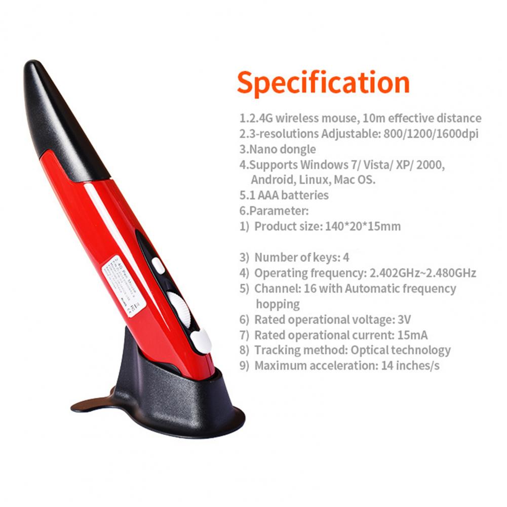 2,4 Ghz 800/1200/1600 DPI Вертикальная ручка-образная Беспроводная оптическая ручка-стилус мышь для ПК