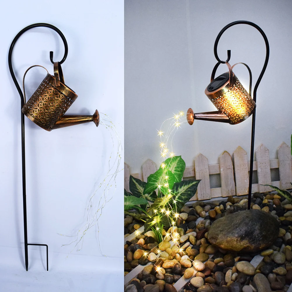 Кованая Железная выдалбливающаяся лампа металлическая Солнечная поливная банка брызгает Сказочный светильник светодиодный наружный сад водонепроницаемое освещение для душевой светильник украшение