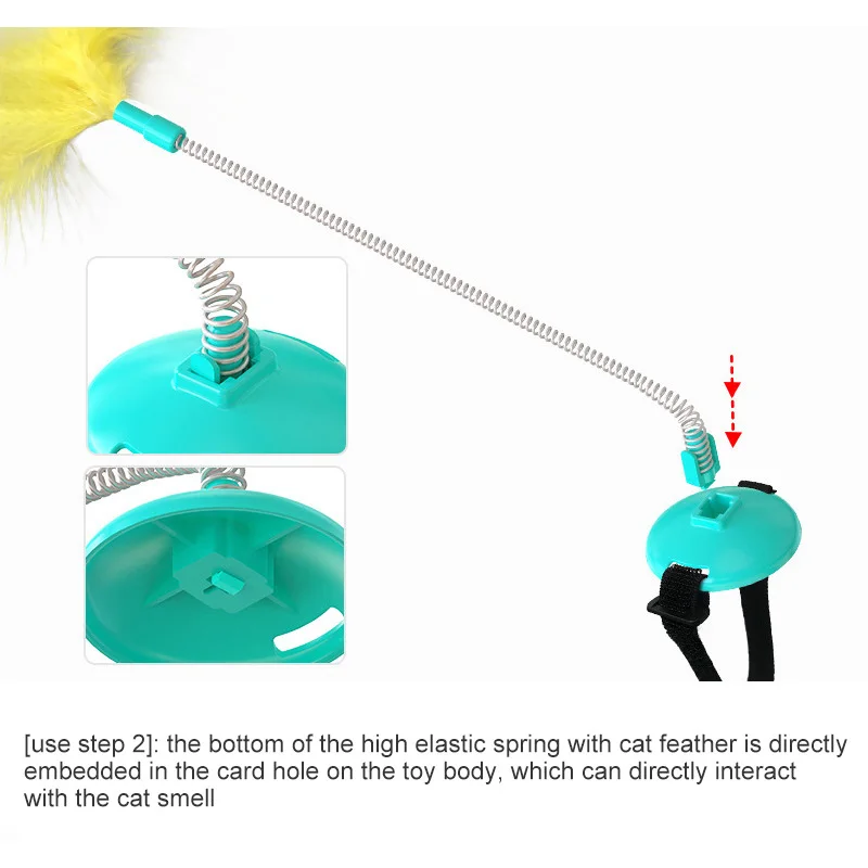 3. Благодаря активному движению головы/шеи кошки неравномерно ведите на высокоэластичный пружинный цикл, чтобы верх изделия двигался перьями, чтобы привлечь внимание кошки, позволяйте кошке кусать, погонять и делать другие активности, увеличивая активность кошки, улучшая физическую форму кошки, Улучшите интеллект кошки.
