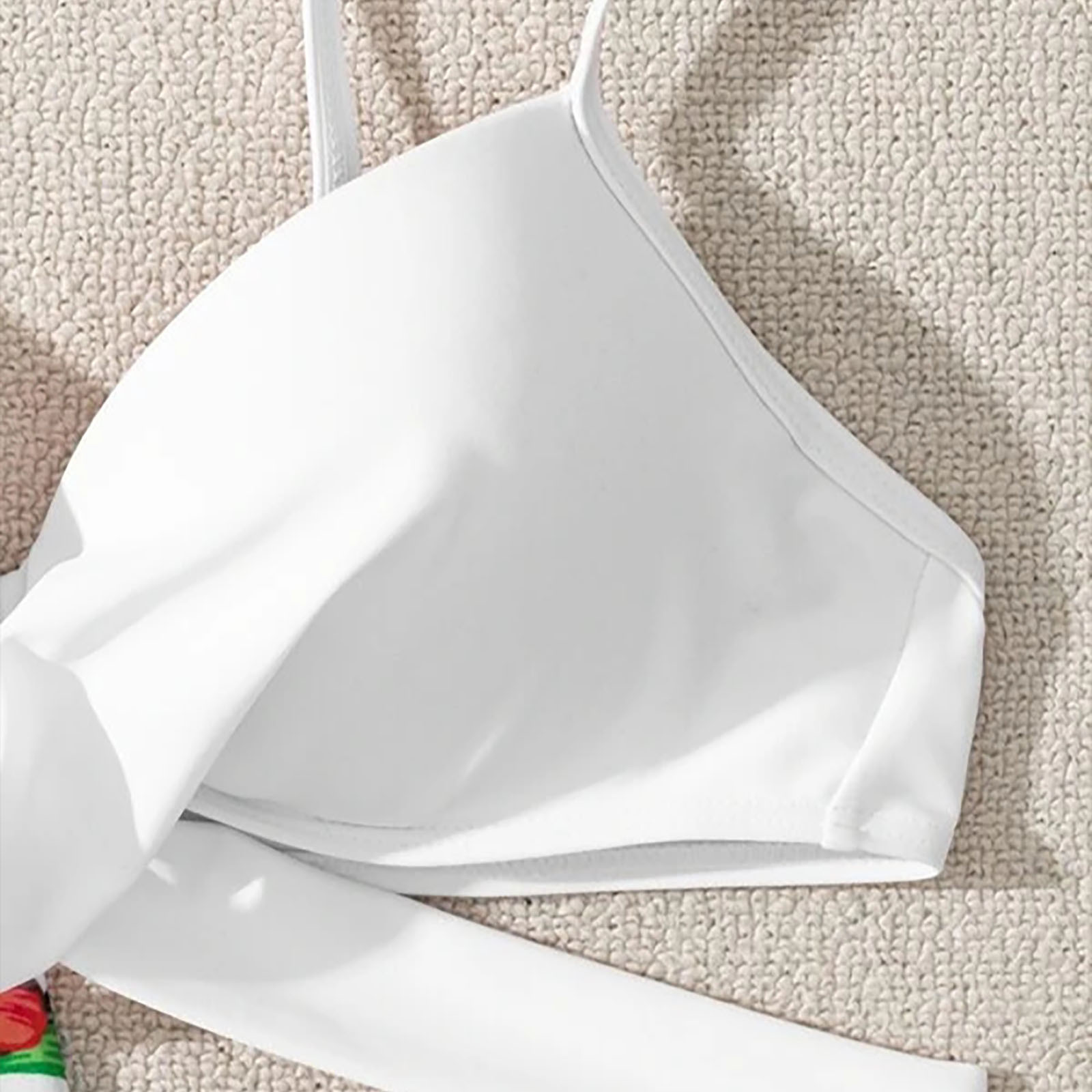 Бретели и несъемный бюстгальтер с подкладкой обеспечивают дополнительную поддержку, отсутствие стального кольца, удобно и легко надевать и снимать.