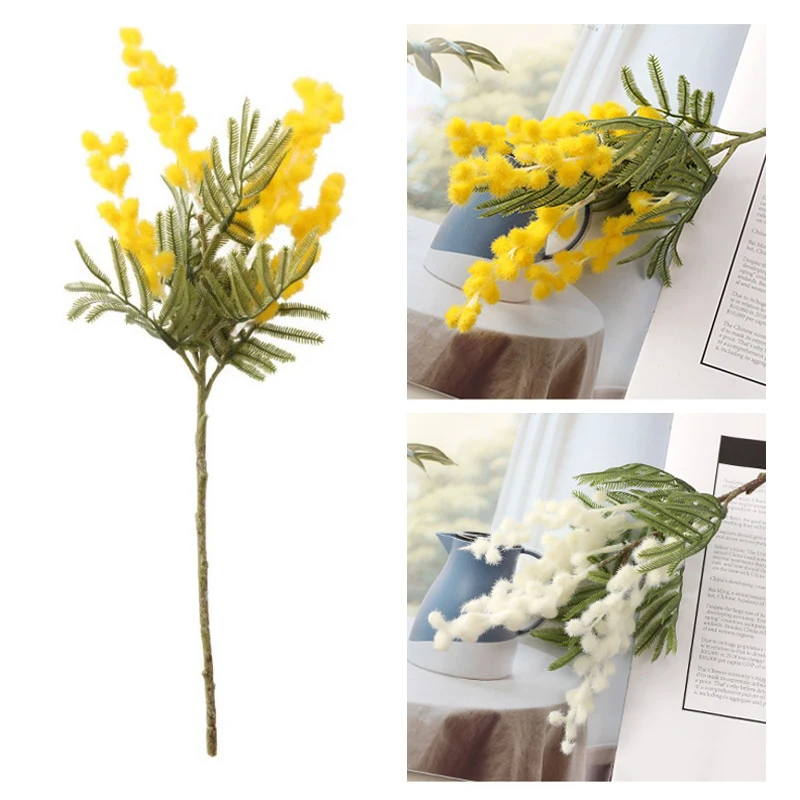 Искусственные цветы акации, 1 шт., 38 см, спрей для вишни, фруктов, ветки, имитация желтой мимозы, цветок, украшение для дома, стола, спальни