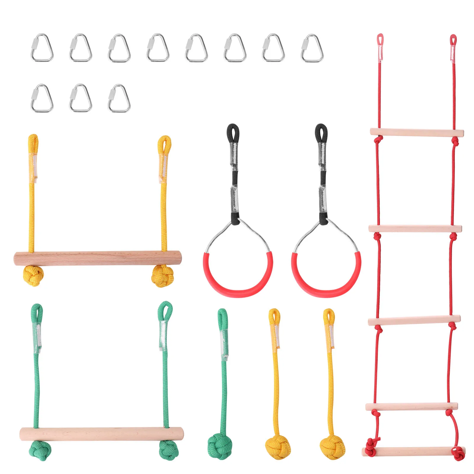 Этот детский комплект для активного отдыха предоставляет детям различные упражнения, инструменты для скалолазания, может культивировать у детей координацию, смелость и физическую силу.