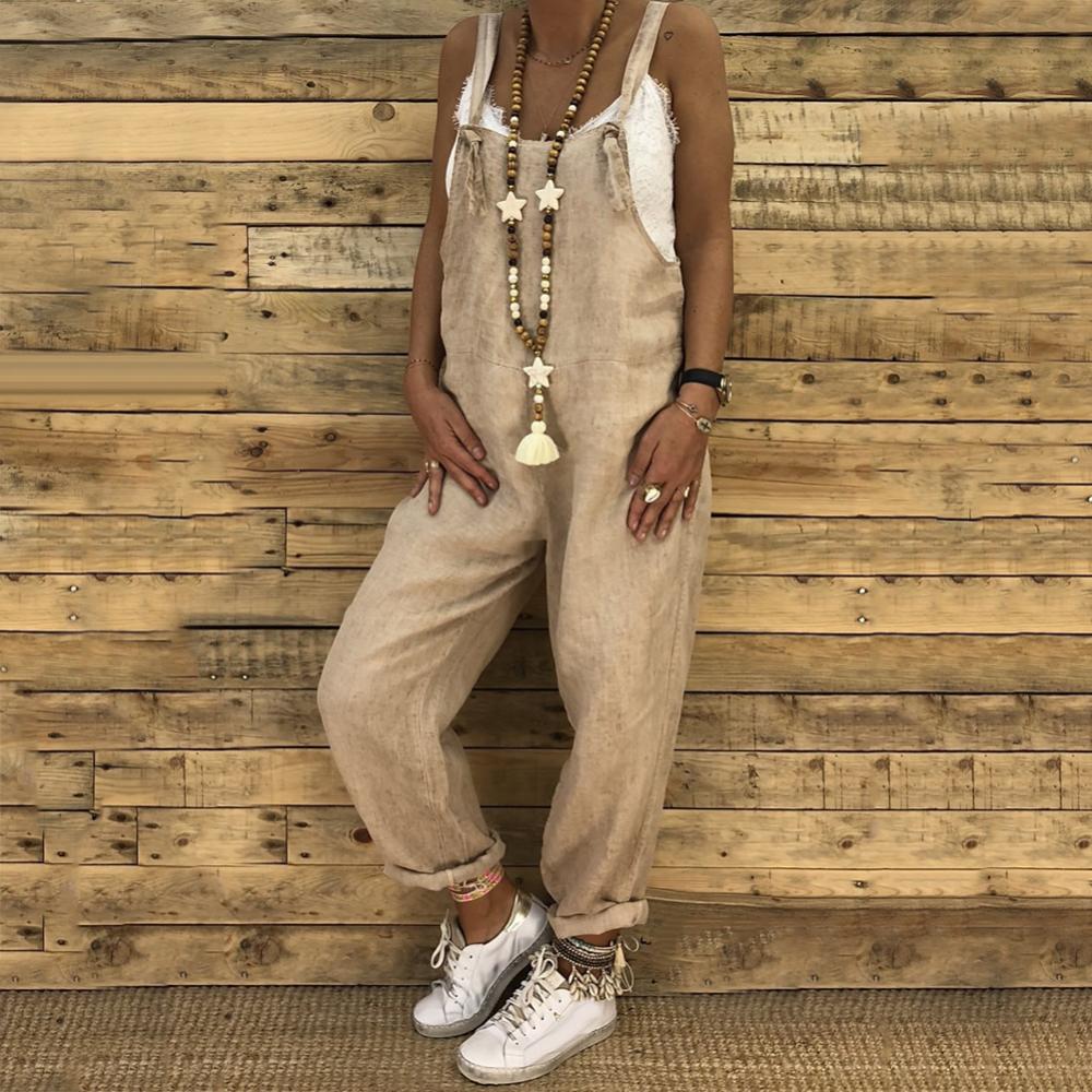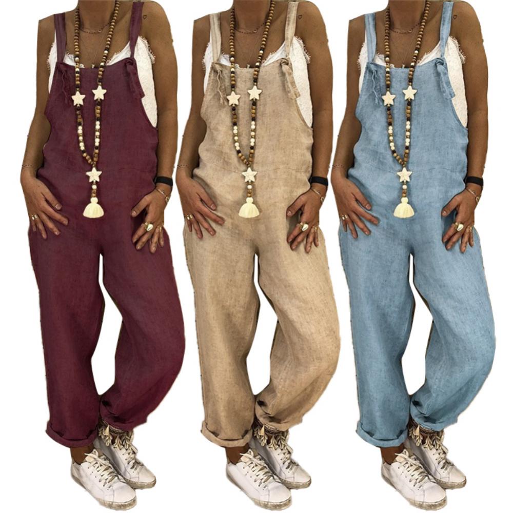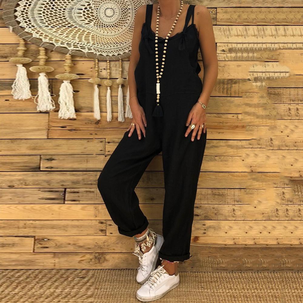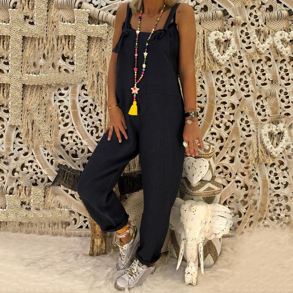 Женский Повседневный однотонный комбинезон без рукавов с регулируемыми лямками, Свободный комбинезон