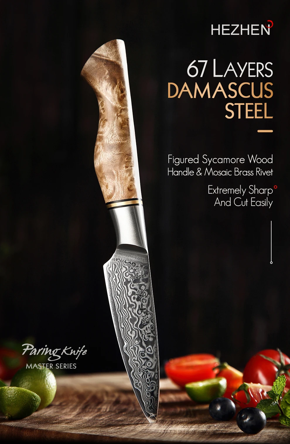 Нож для очистки овощей из дамасской стали HEZHEN MasterSeries