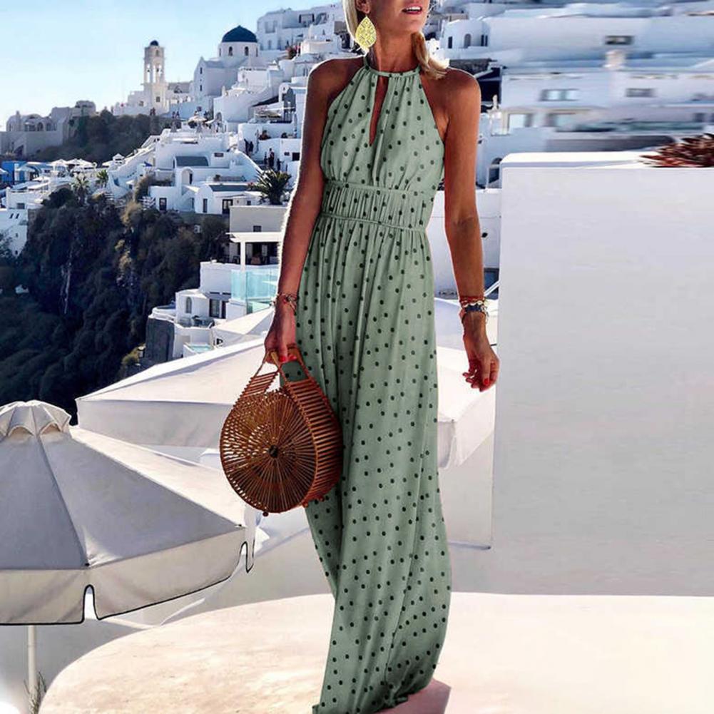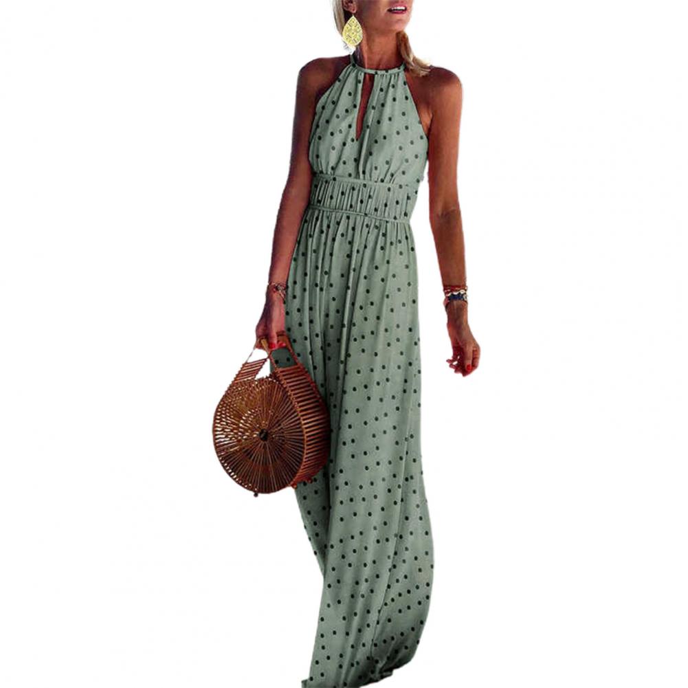 Платье макси в богемном стиле с принтом пейсли/горошек/цветов. Это модное платье с круглым вырезом, лямкой на шее и открытой спиной.