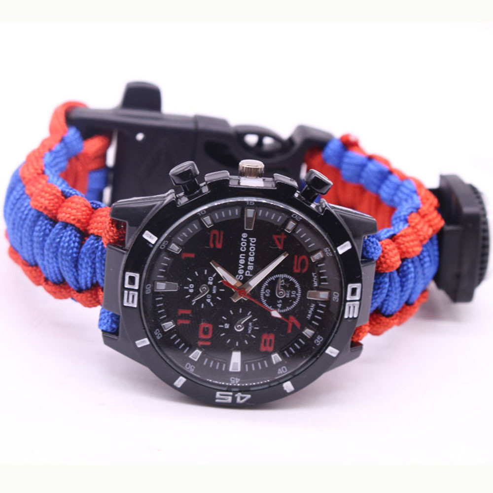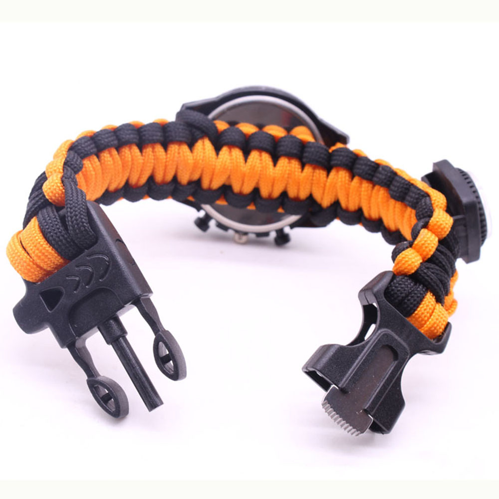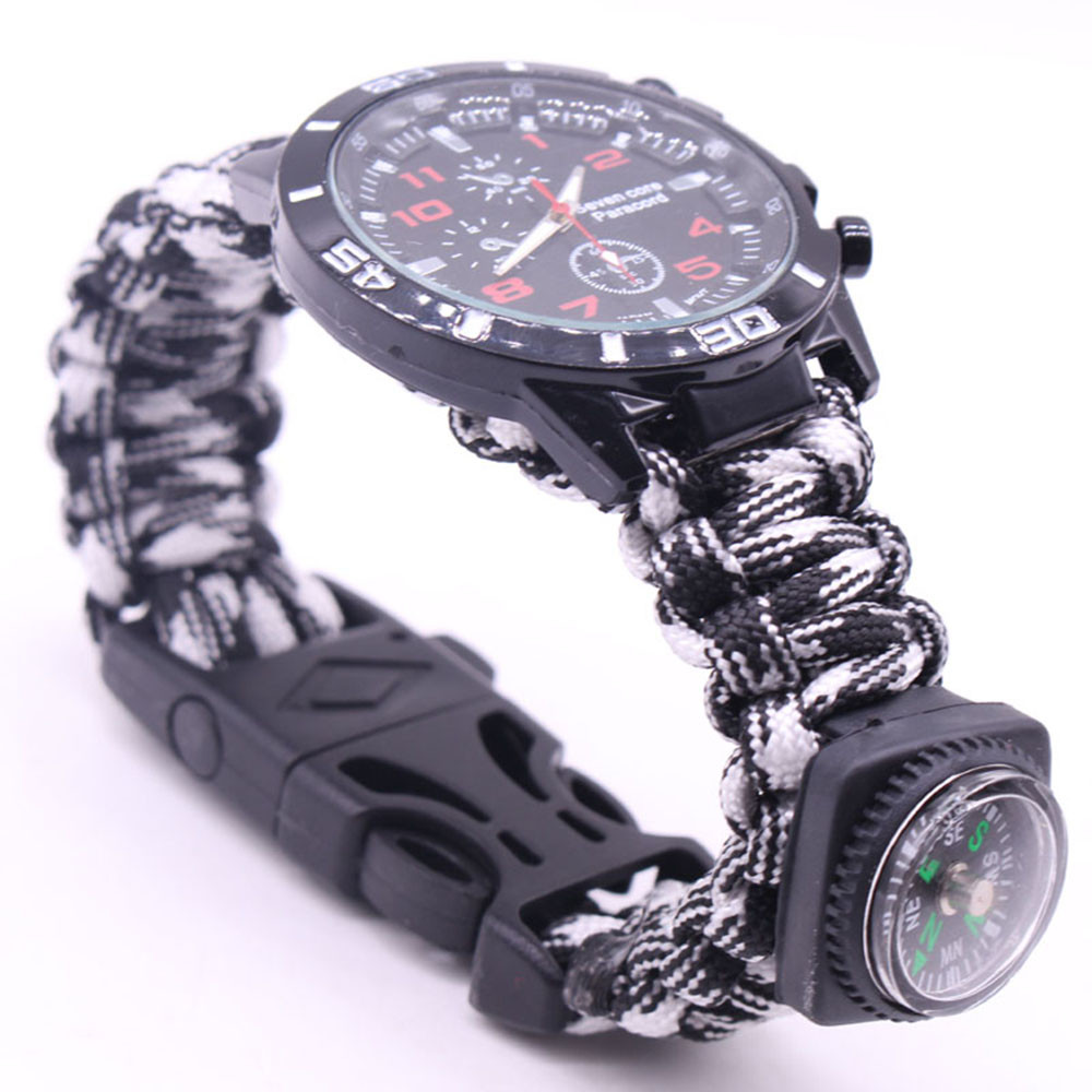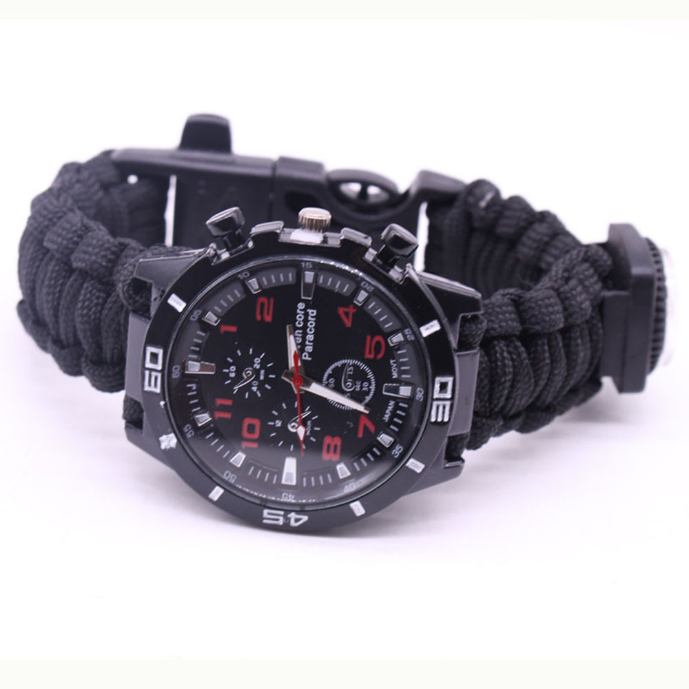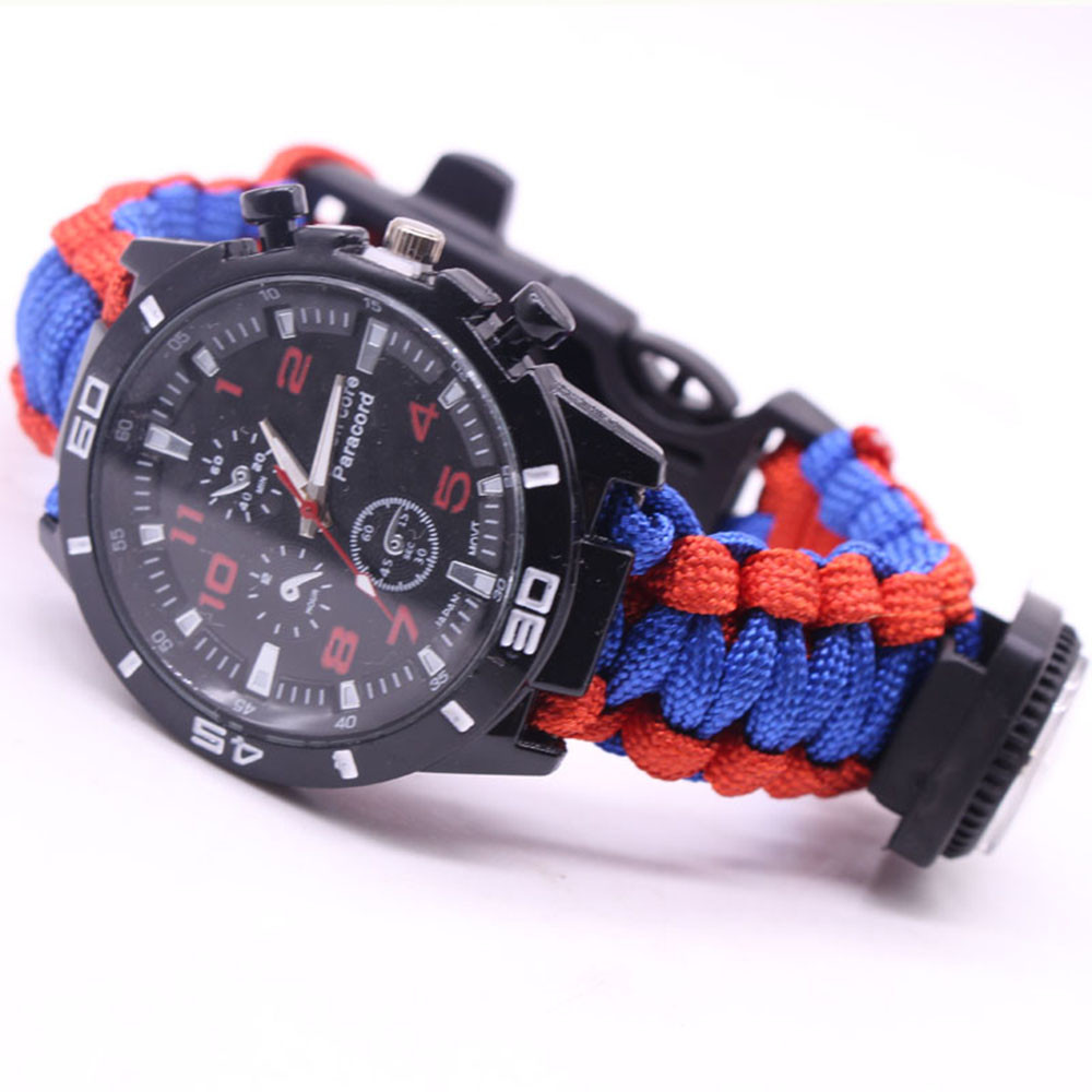 Мощный: Тройной свисток спасательный, огнеупорные стержни, компас, термометр, лезвие, пряжка, Зонтик веревка, часы один, восемь в одном функциональные часы.
