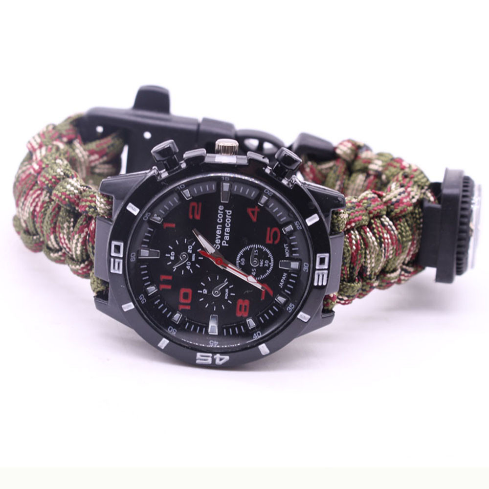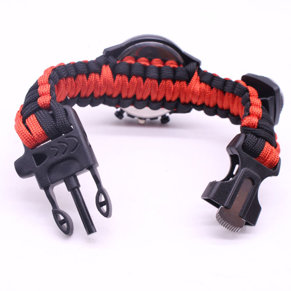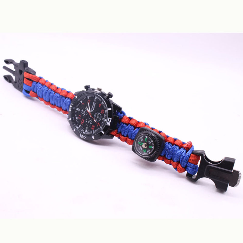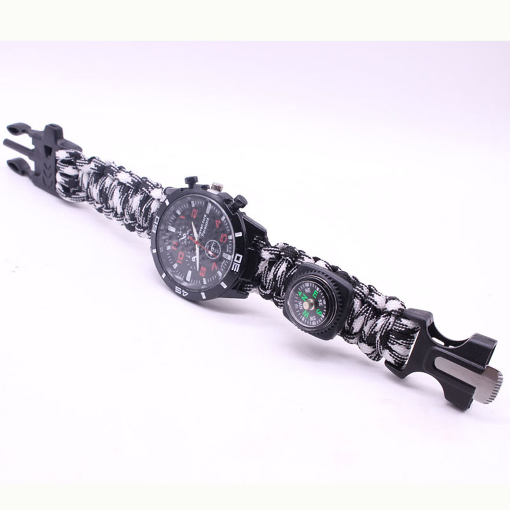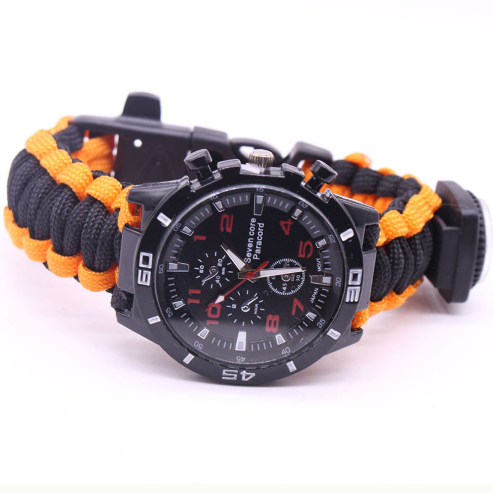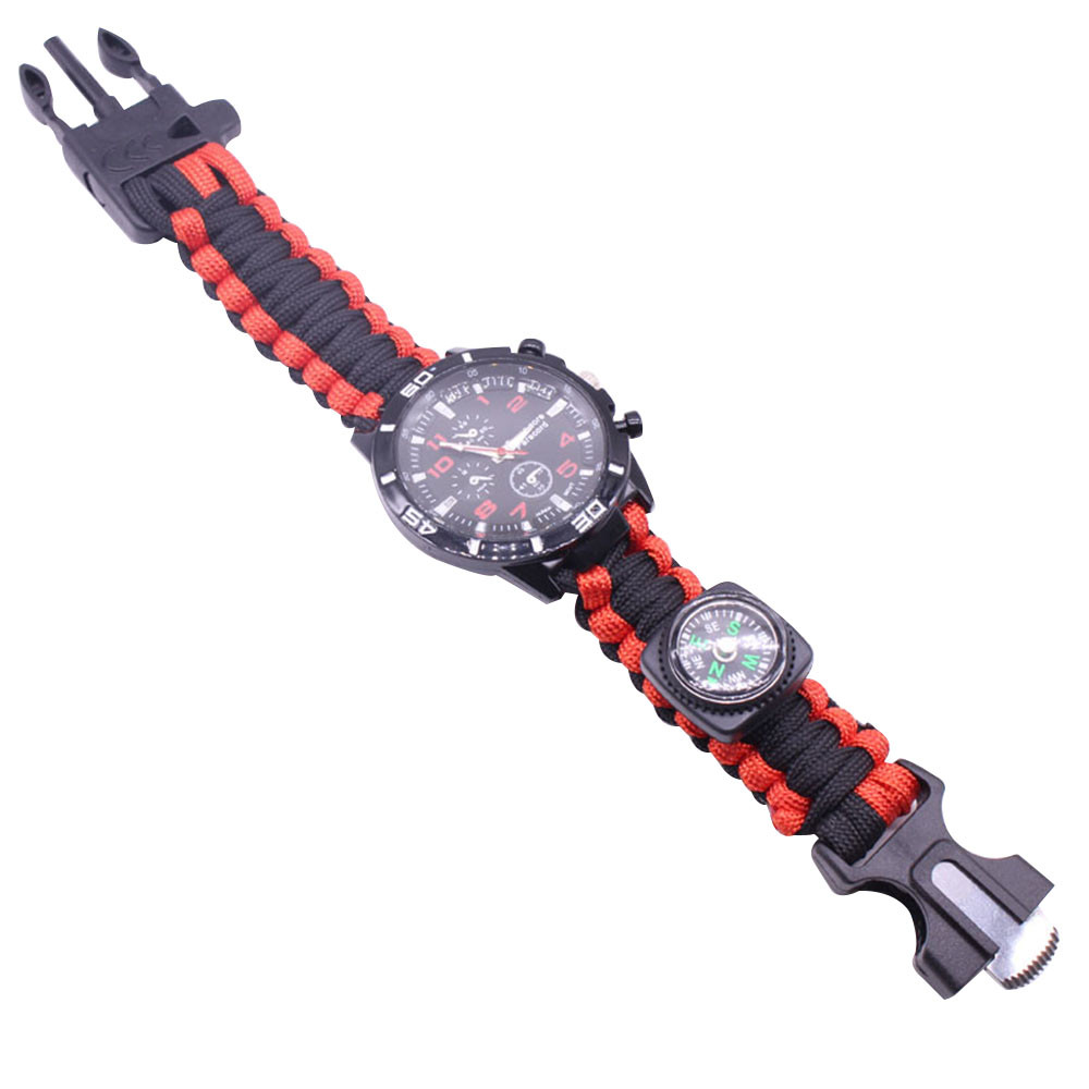 Мощный: Тройной свисток спасательный, огнеупорные стержни, компас, термометр, лезвие, пряжка, Зонтик веревка, часы один, восемь в одном функциональные часы.