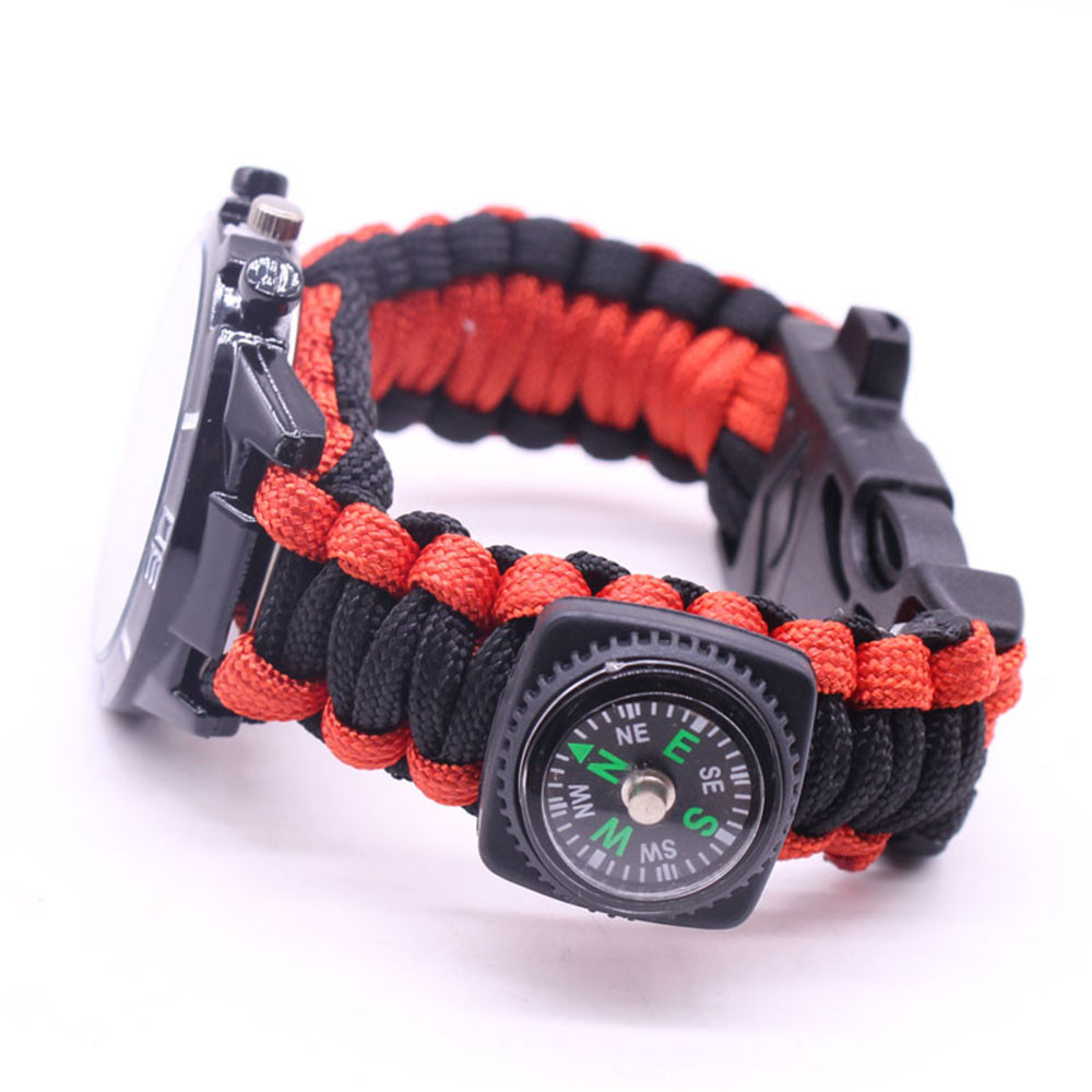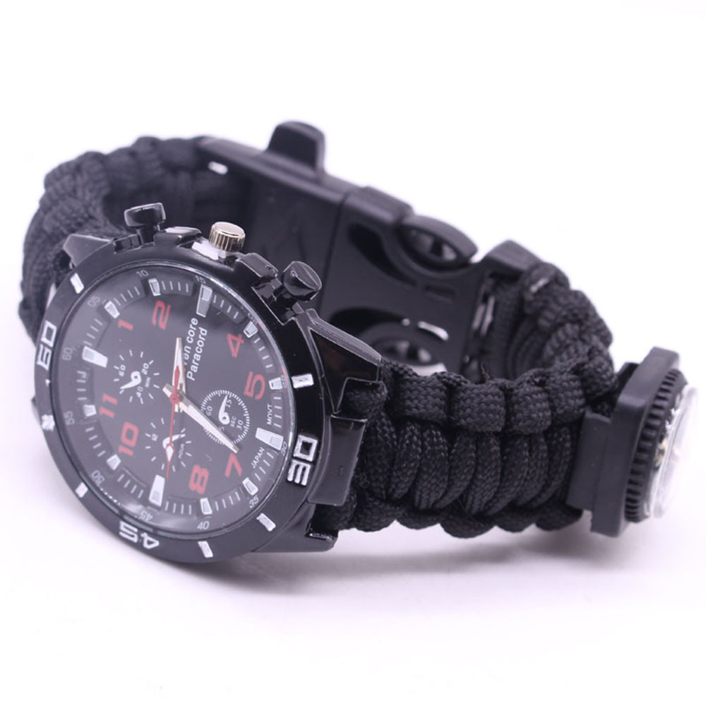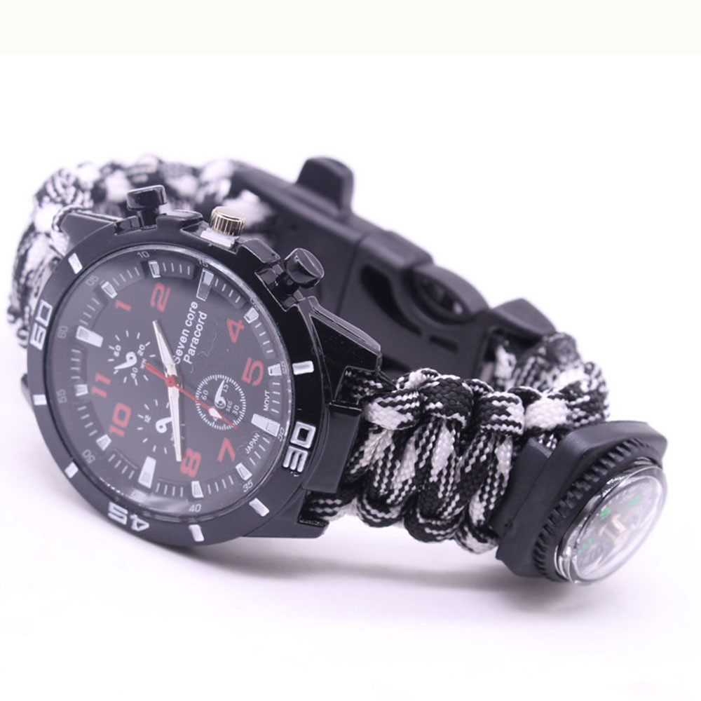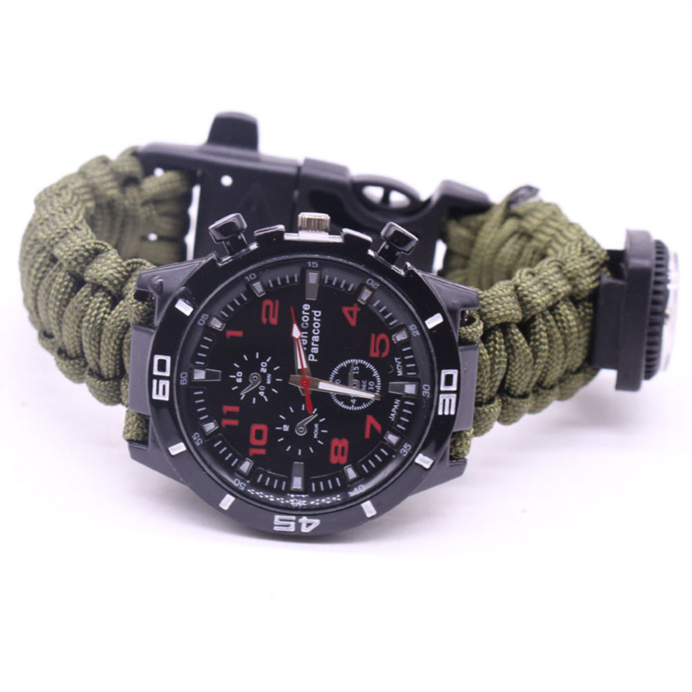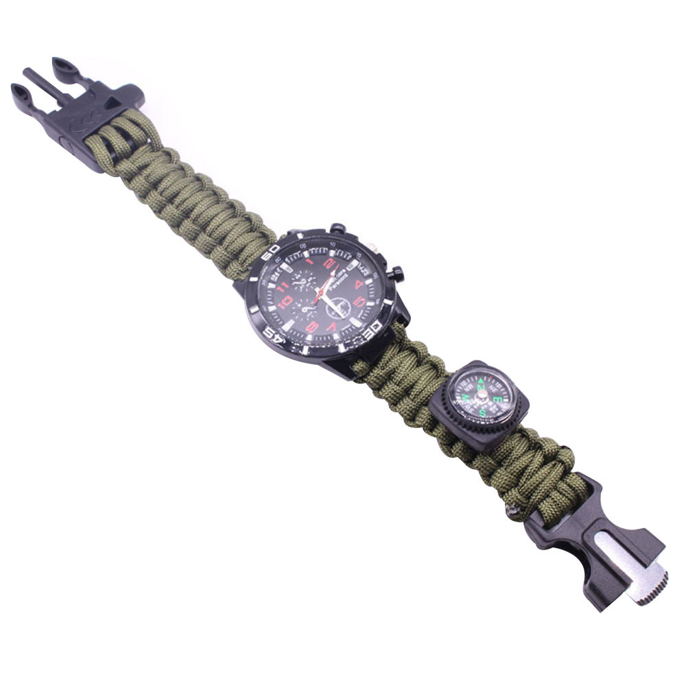 Мощный: Тройной свисток спасательный, огнеупорные стержни, компас, термометр, лезвие, пряжка, Зонтик веревка, часы один, восемь в одном функциональные часы.