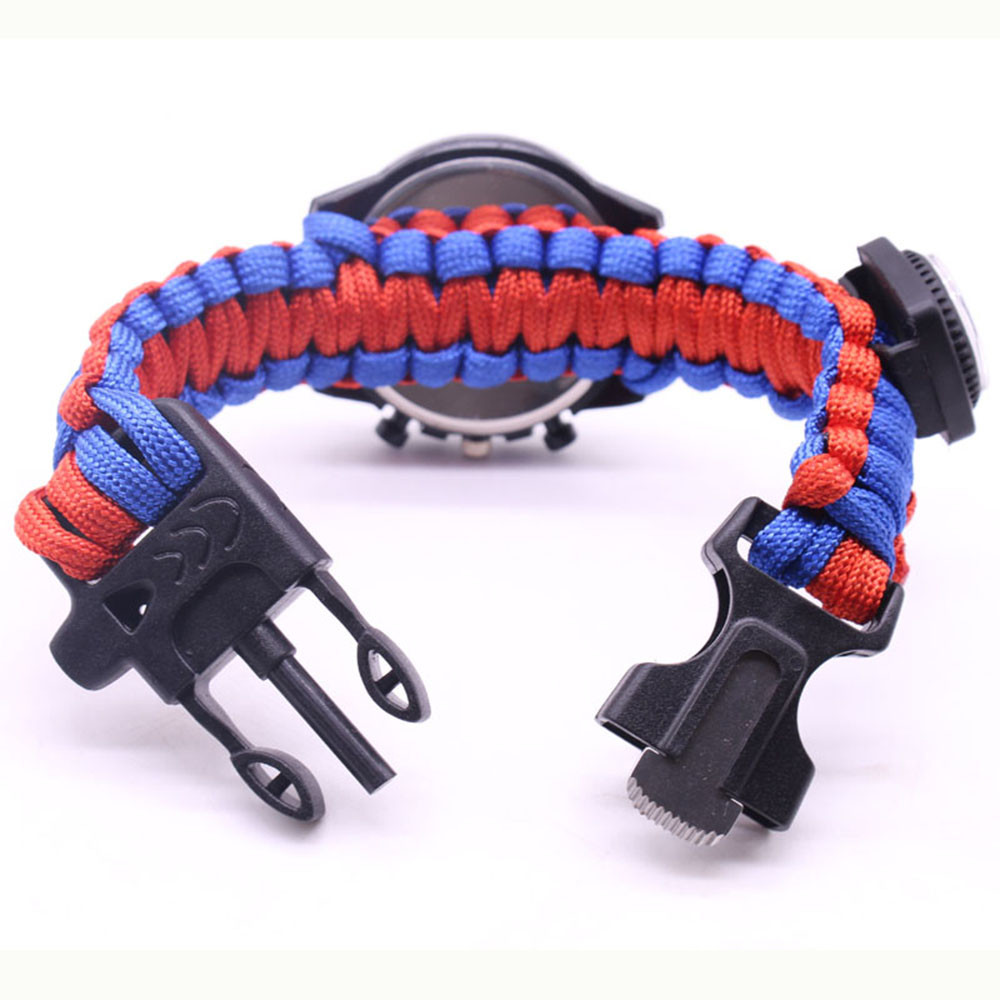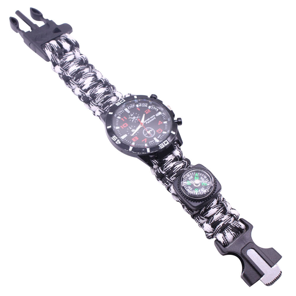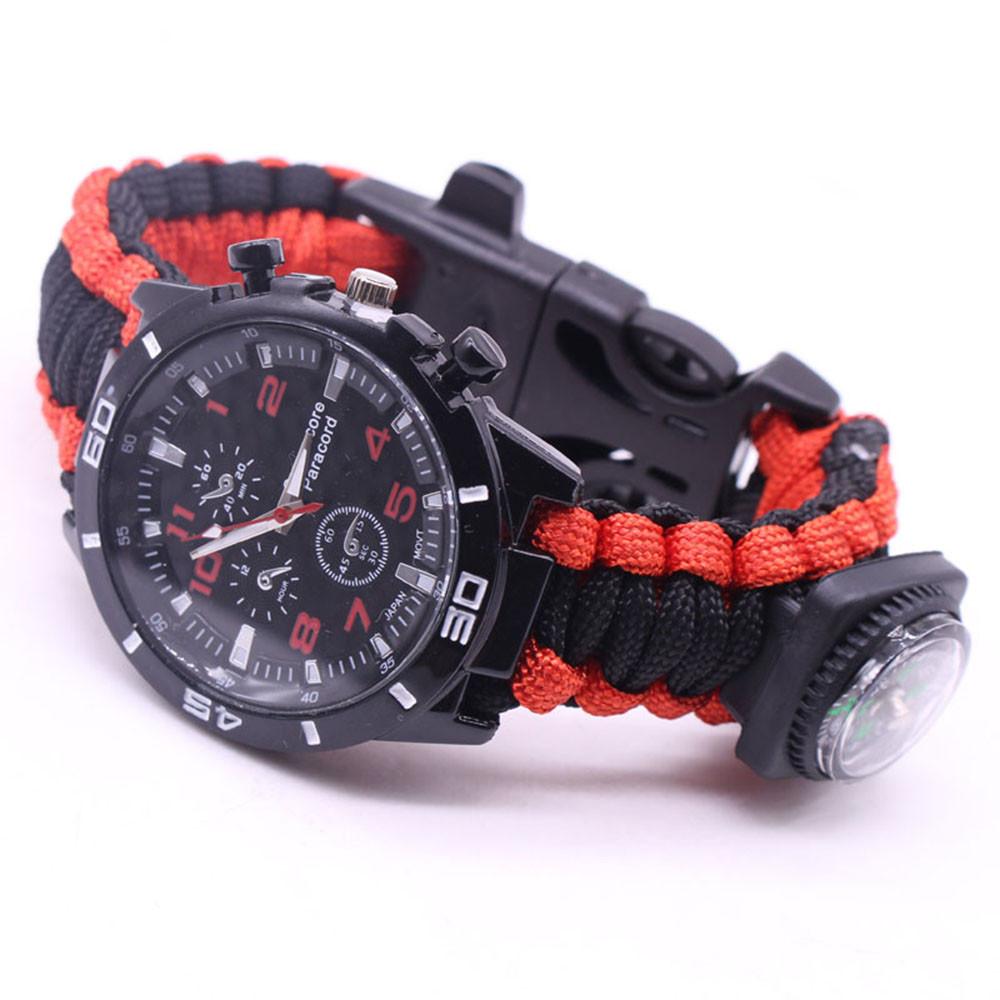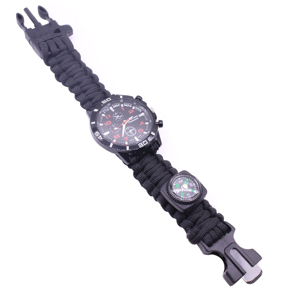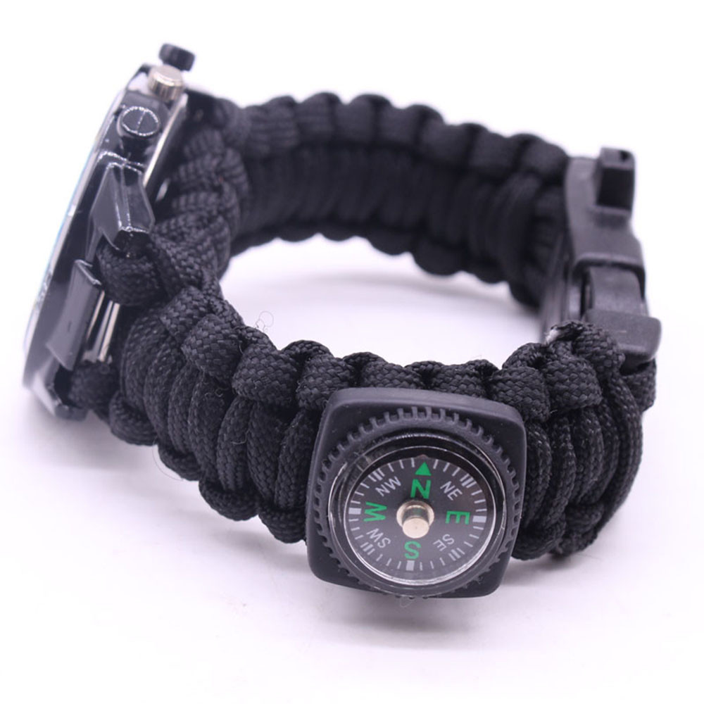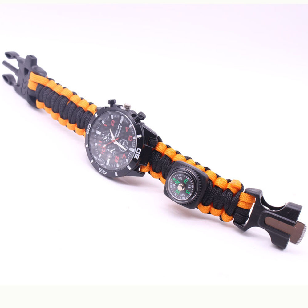 Мощный: Тройной свисток спасательный, огнеупорные стержни, компас, термометр, лезвие, пряжка, Зонтик веревка, часы один, восемь в одном функциональные часы.