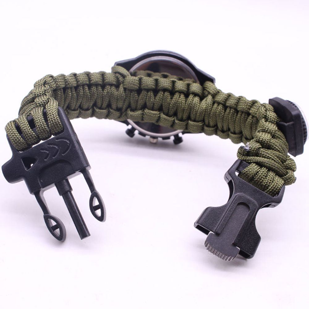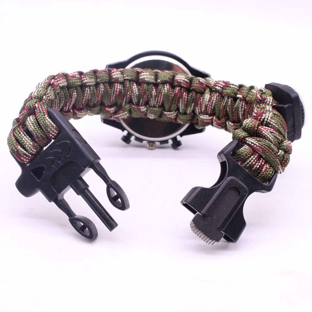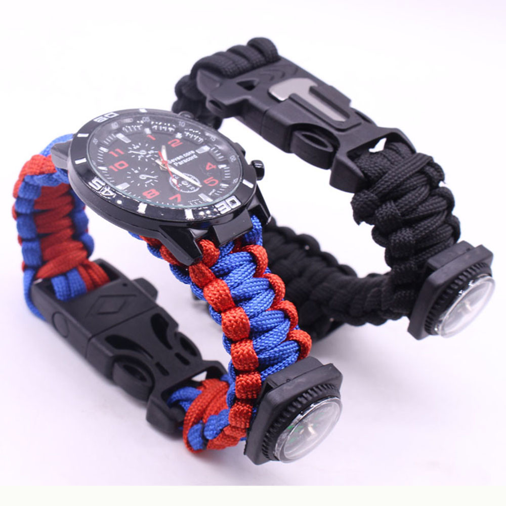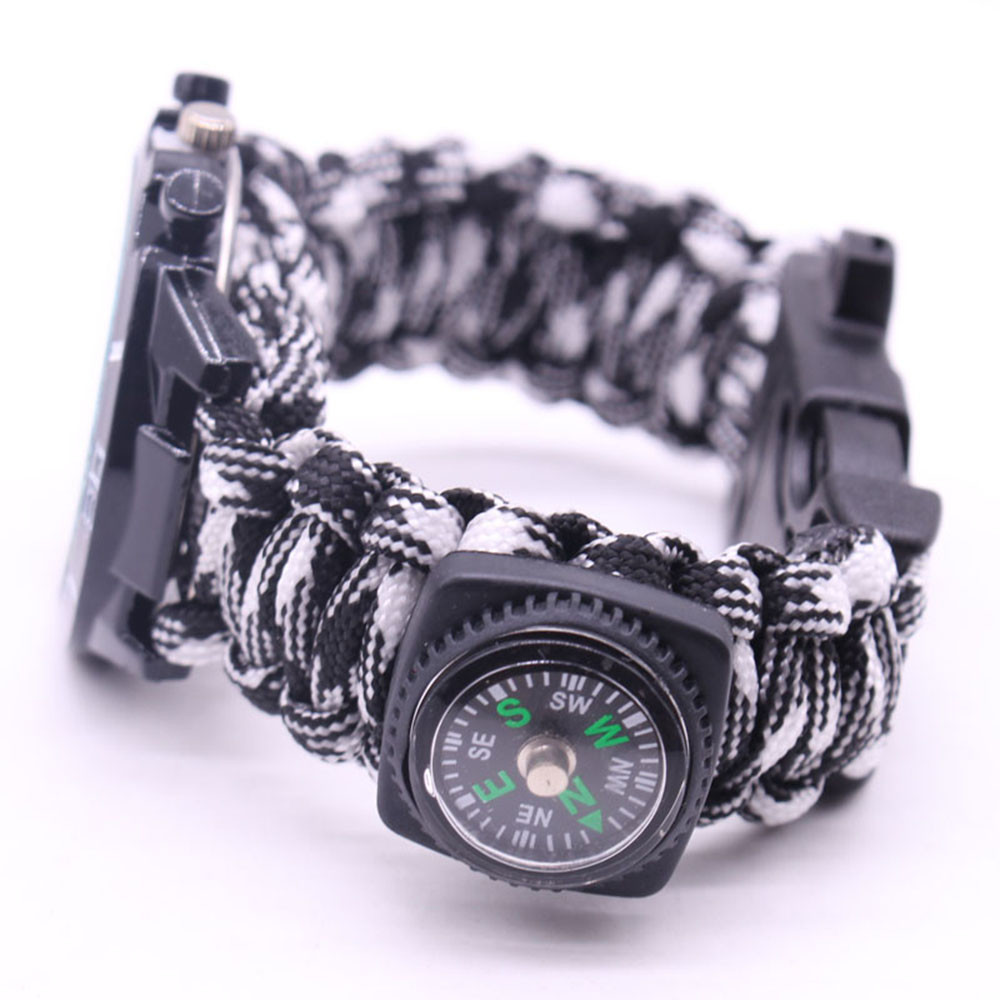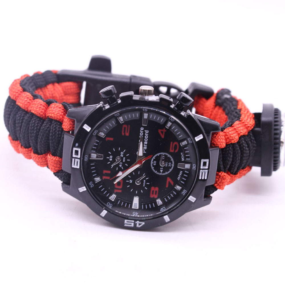 Мощный: Тройной свисток спасательный, огнеупорные стержни, компас, термометр, лезвие, пряжка, Зонтик веревка, часы один, восемь в одном функциональные часы.