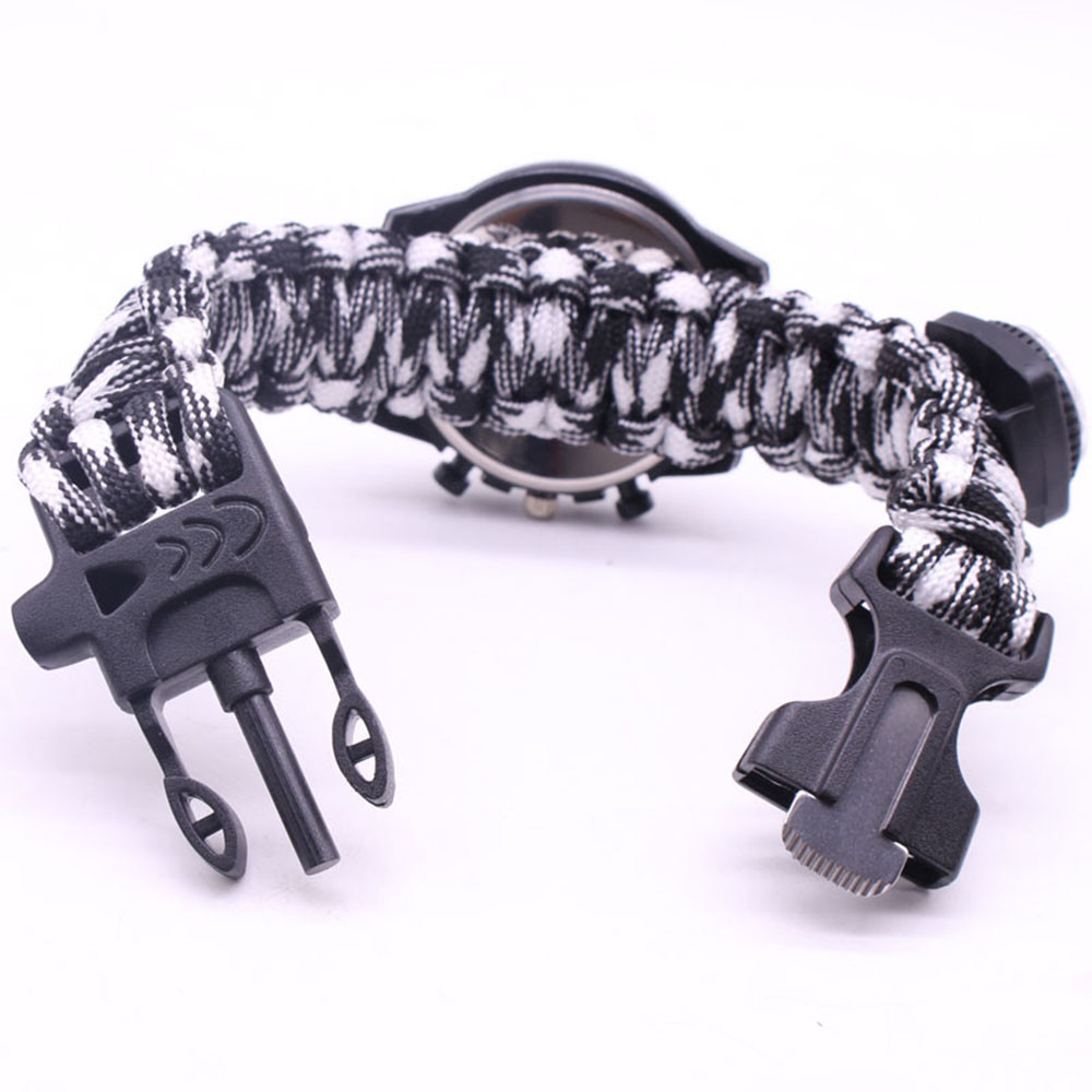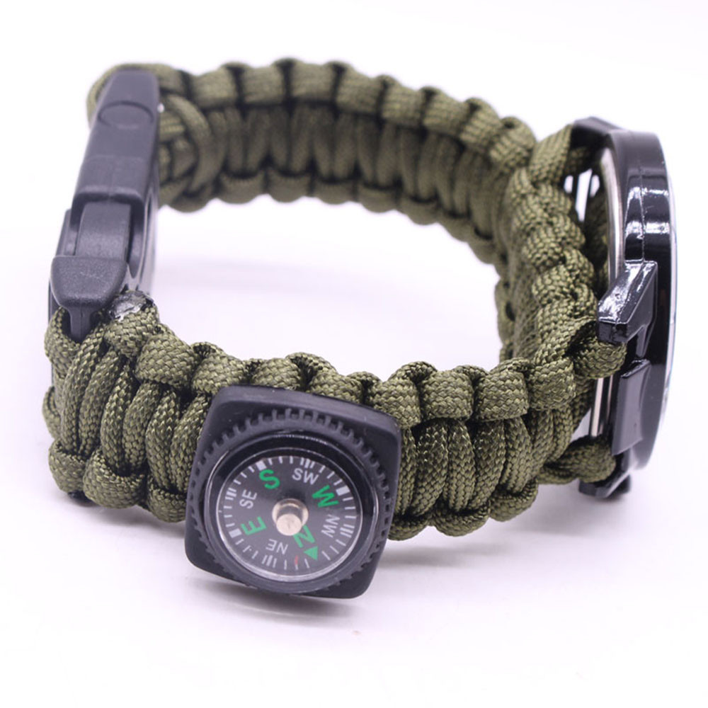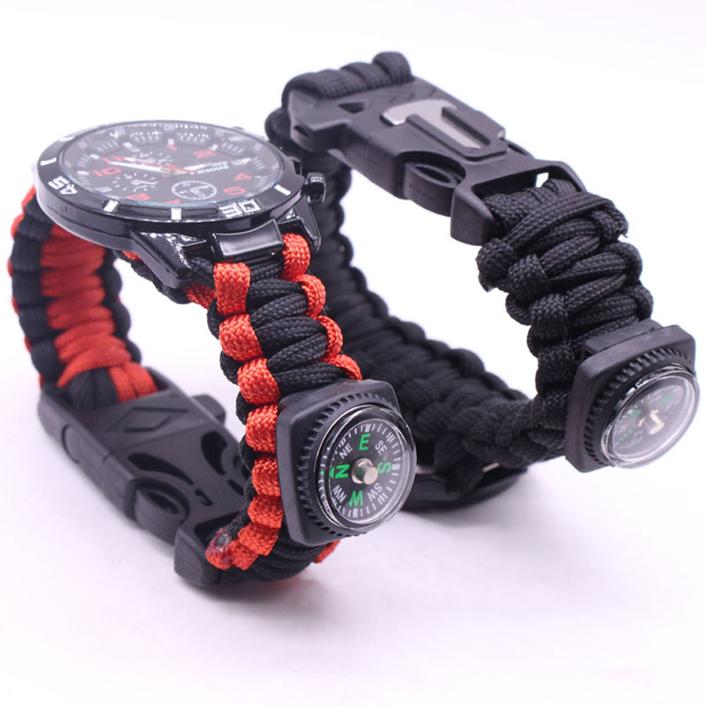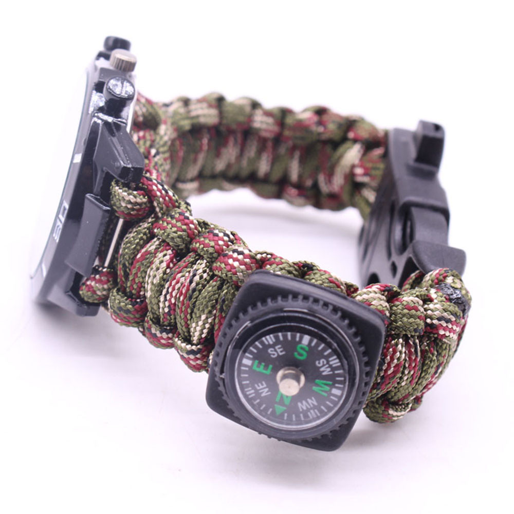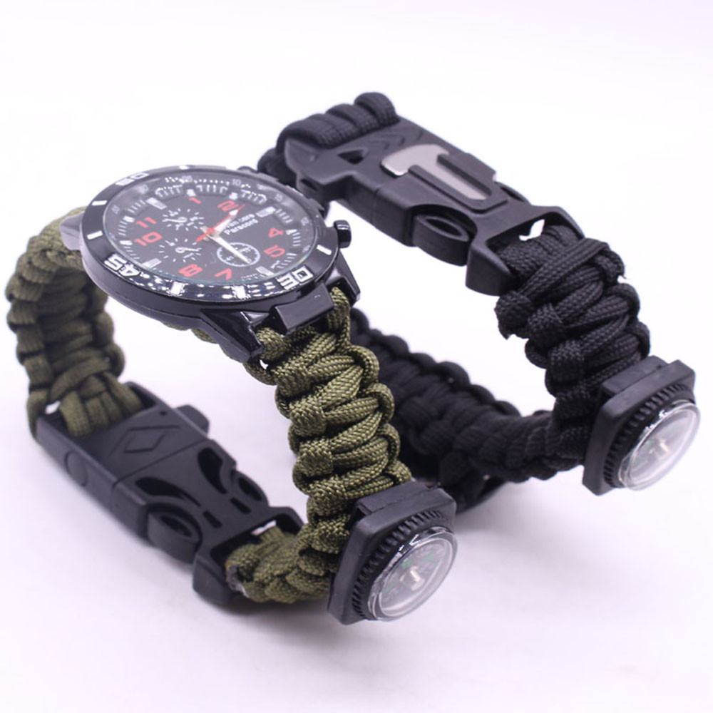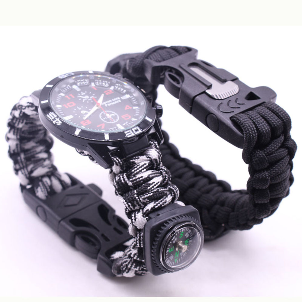 Мощный: Тройной свисток спасательный, огнеупорные стержни, компас, термометр, лезвие, пряжка, Зонтик веревка, часы один, восемь в одном функциональные часы.