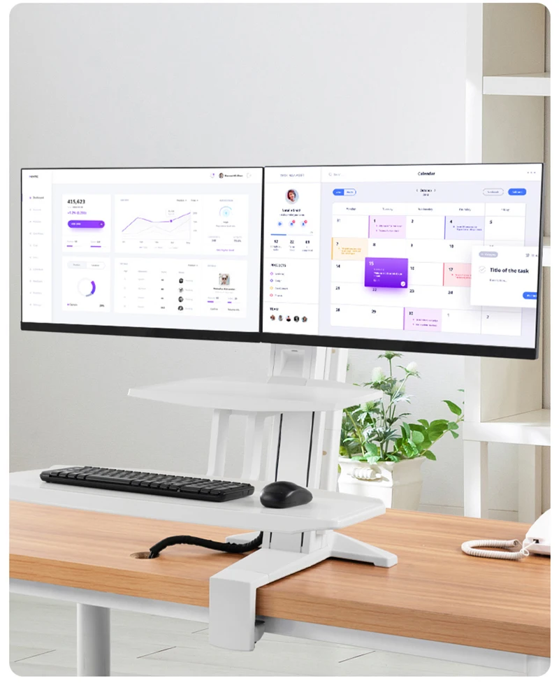 ST35-2A-это рабочее место с настольным зажимом, которое позволяет разместить его на любом существующем столе с фиксированной высотой и мгновенно преобразовать ваше длительное сидение в рабочее место с активной подставкой. Конструкция в механической системе балансировки, Клавиатура и монитор перемещаются в тандеме одним нажатием или тягой, чтобы легко установить ваш рабочий рост. Вмещает один монитор от 19 ”до 27” с максимальной емкостью веса 2-9 кг каждый. Интерфейс VESA поставляется с полным диапазоном регулировки монитора после установки, включая высоту, вращение на 360 ° и наклон, обеспечивает эргономичность вашего глаза, рук, спины и шеи.
